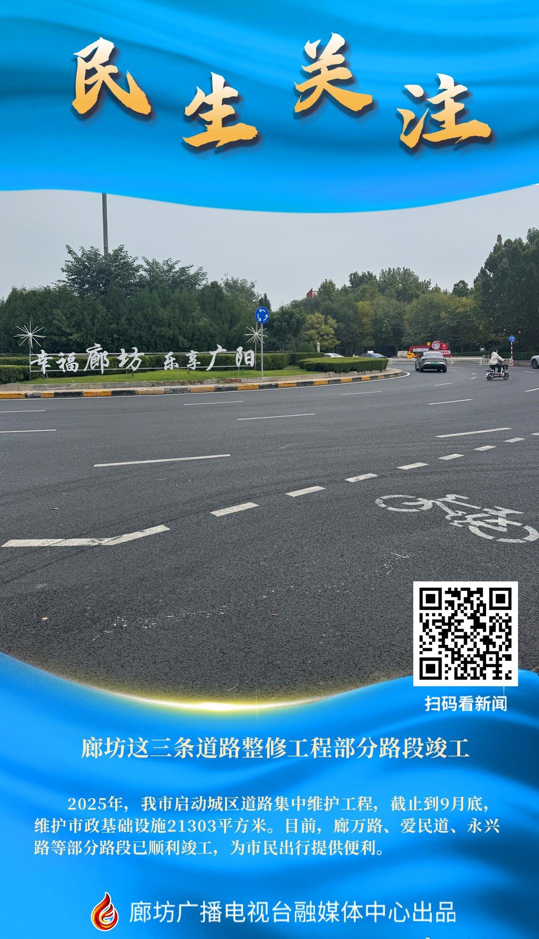 【海报丨廊坊这三条道路整修工程部分路段竣工】