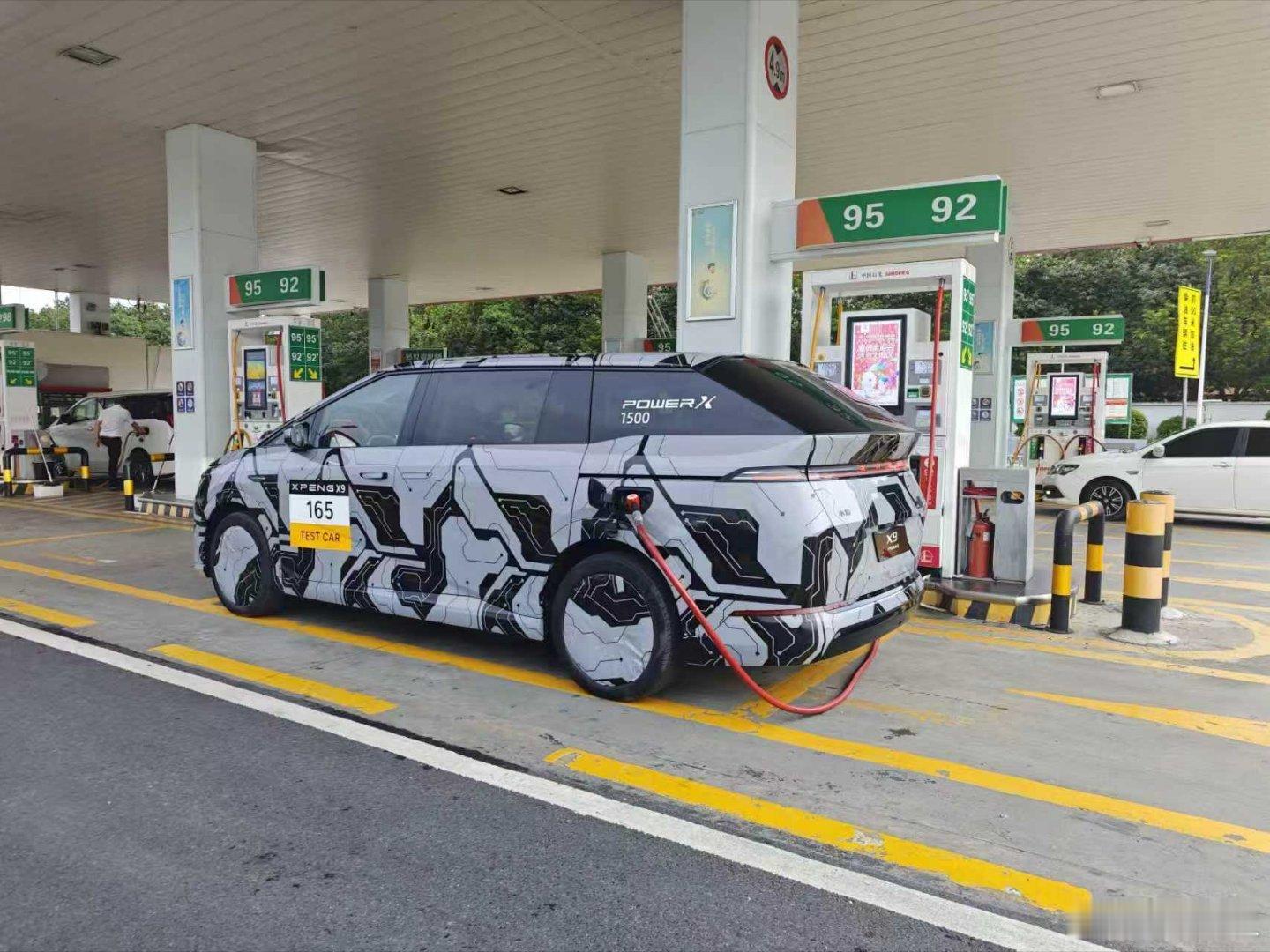 哎呀呀~在加油站拍到小鹏X9,竟然还是加92,而且还加了59升。