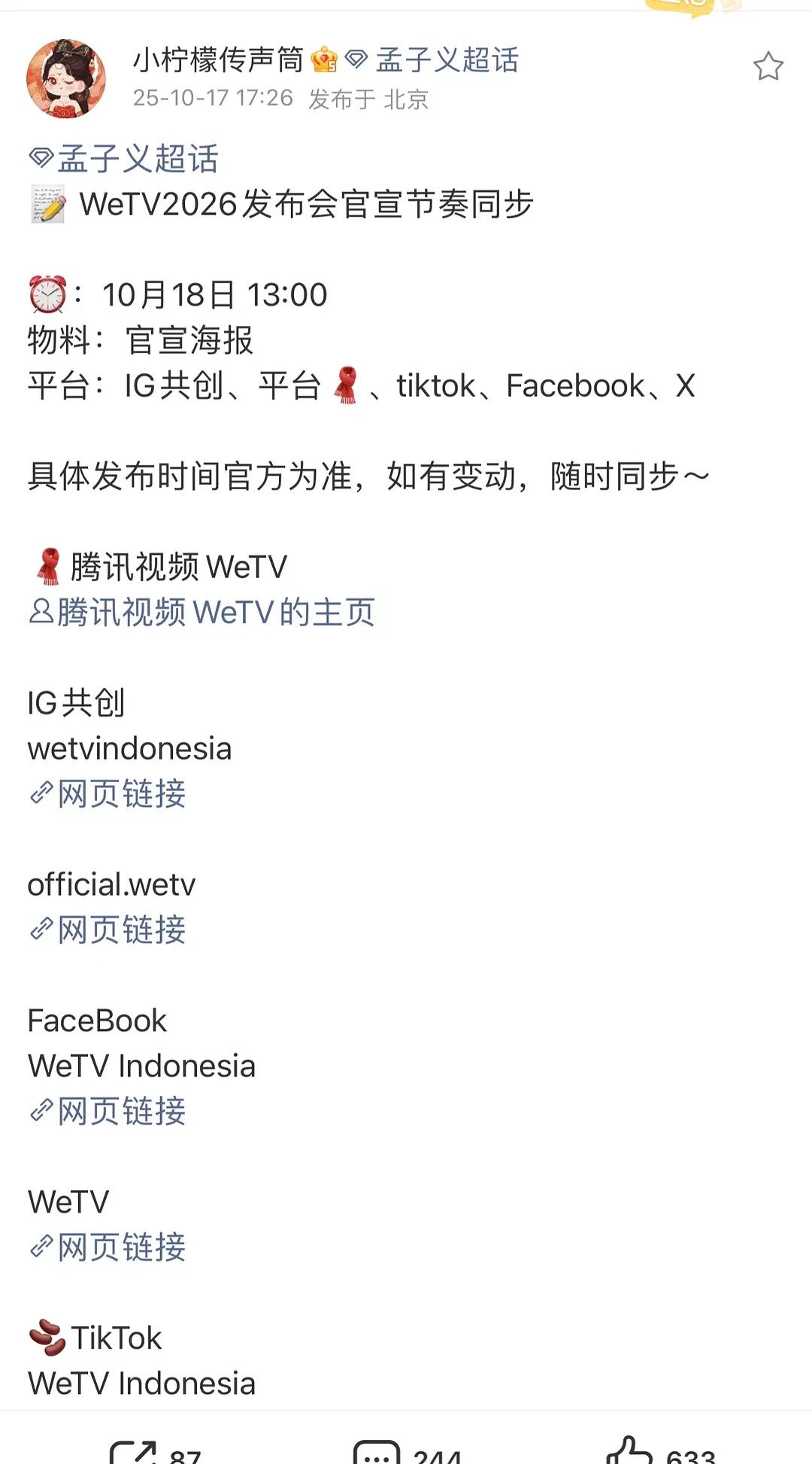 孟子义WeTV全球代言人预热🈶期待孟姐接下来在鹅的几部待播剧[哇][哇][哇]