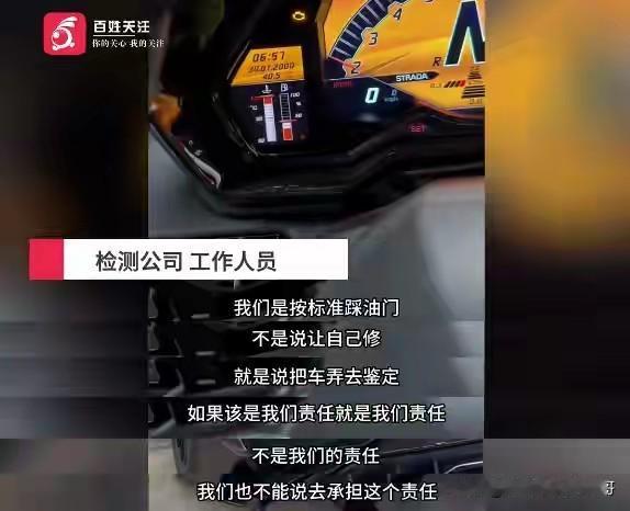 也可能是因为我的车开的太久了,所以说是去汽车线下检测站去检测的时候,无论他们检测工作人员怎么踩,我都并没有说特别的在乎,本来就是快10年的车,所以觉得踩就踩吧,如果是真的有什么问题的话,那就去维修一下,如果实在维修不了的话,那就算了。但是人家兰博基尼700多万呢,你那么用力的一下子把油门踩到底,而且还把人家汽车零件给踩坏了,维修一下都需要去国外进口原件,人家的确是内心有点不爽,肯定会去索赔的,关键是他们工作人员的态度也不是说特别的好,也可能说他们觉得是政府部门,不可能向你个人低头的,一旦低头的话,以后的话检测就没有办法检测了,所有人都去维权的话,他们的工作都没有办法开展了,所以说我们可以看到很多人最后就没有办法嘛,只能通过起诉的方式或者说第三方鉴定的方式来判定!