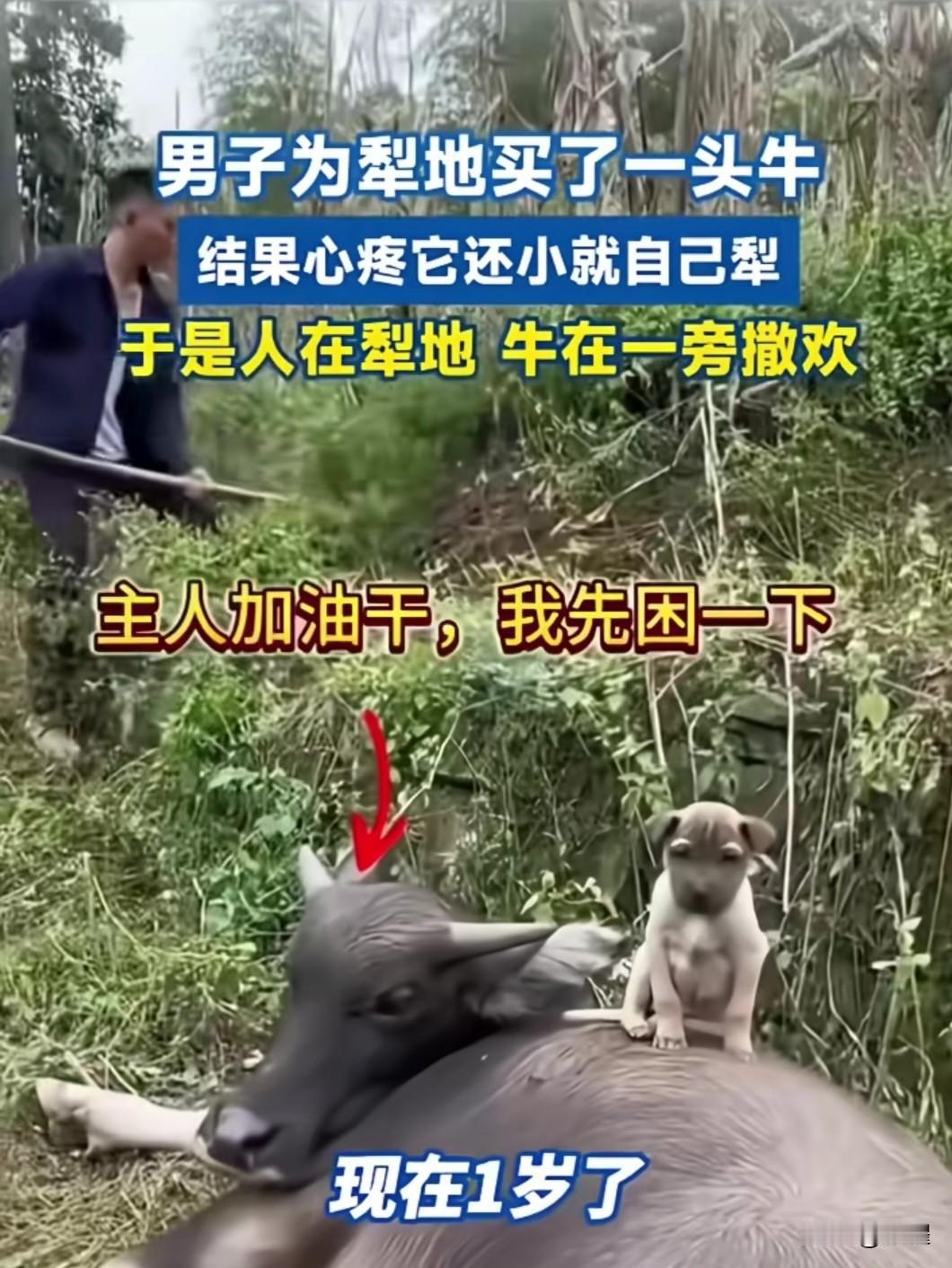 奶糖: 日子不是跟谁一起过都一样。 男子买牛犁地,却因为心疼它年幼,甘愿自己动手,任由“奶糖”在一旁撒欢。 不是所有牛都能拥有在犁地时撒欢的特权,也不是所有陪伴里都藏着偏爱。 真正用心的偏爱, 会让平凡的日子开出不一样的颜色。 友友们,是么?