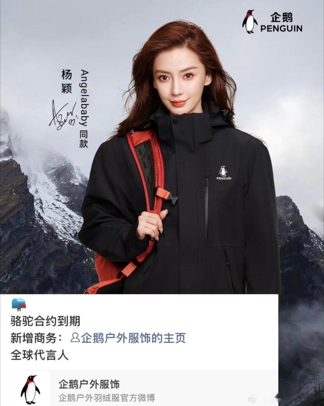 angelababy杨颖新代言预告,企鹅户外服饰全球代言人,又是一个最高title,baby商业价值很高吧?[good]