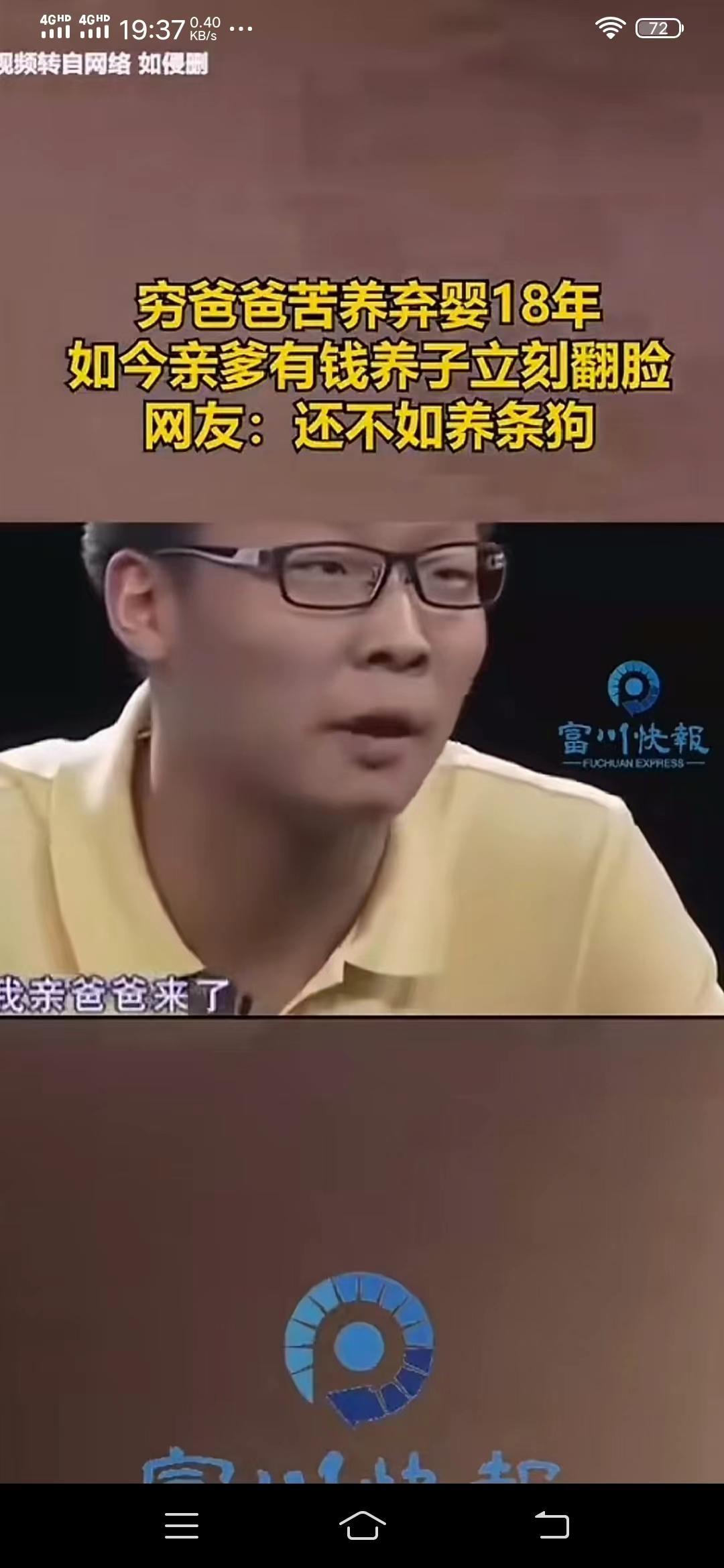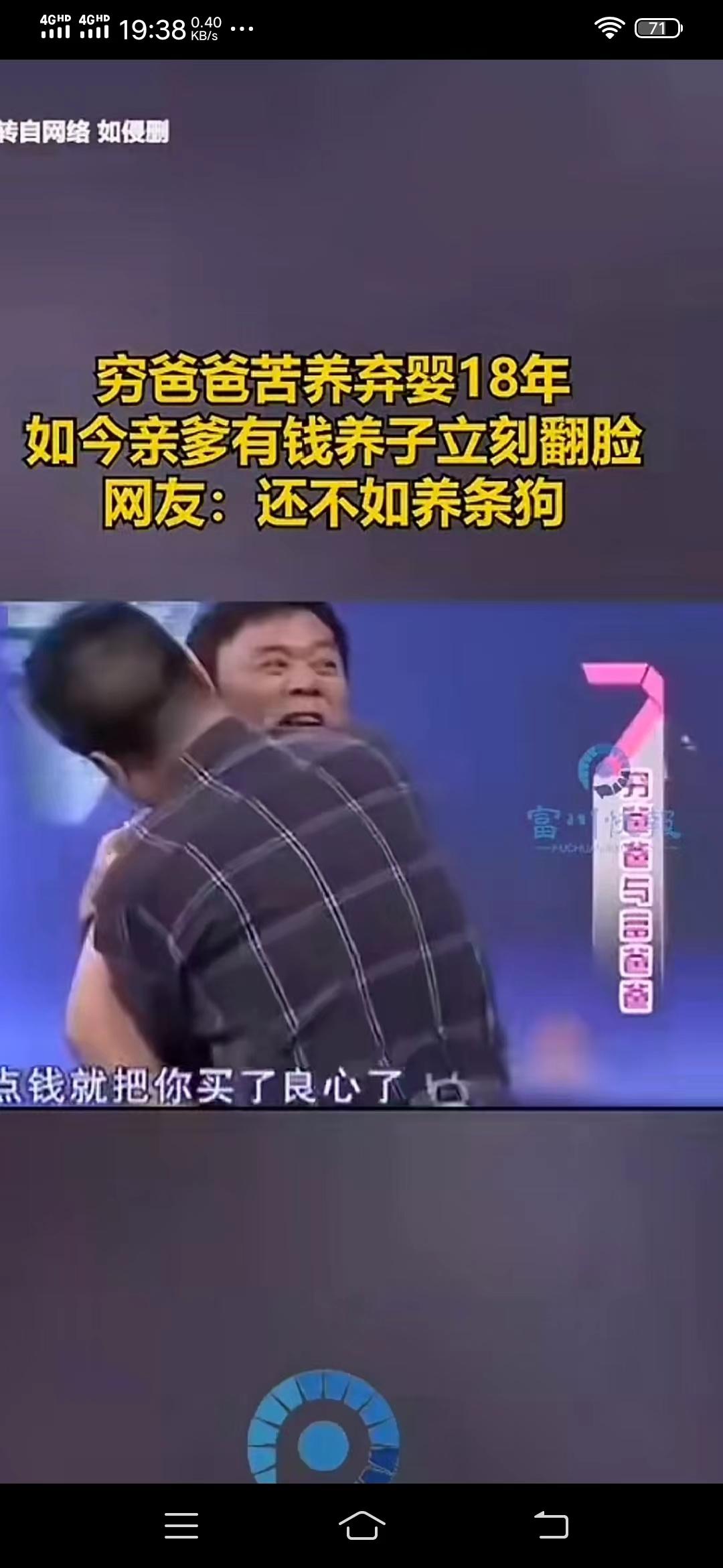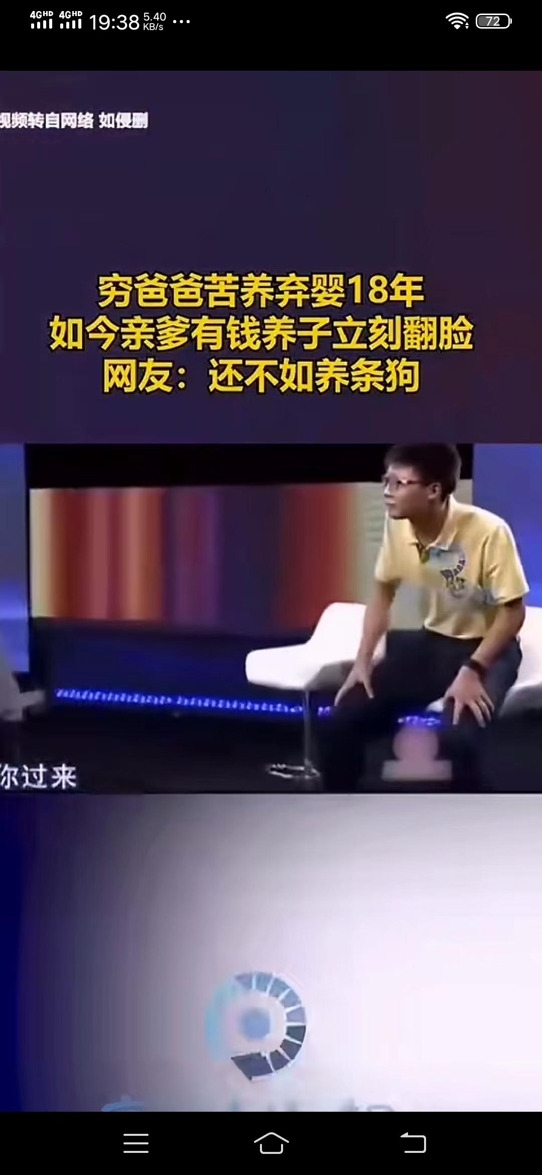 18年养了个忤义种 张老汉因为家境贫穷一直未娶上媳妇,18年前张老汉无意中在路边捡到一个弃婴,从此,张老汉便省吃俭用供养孩子,将孩子看作比他的生命还重要,可就在孩子18岁这年,情况出现了大反转。 张老汉把孩子养大后,亲生父母来登门认亲了,其父母声称家有几千万,可以让孩子过上更好的生活,并执意要把儿子带走。 经亲生父母这么一说,孩子也丝毫没有了感恩之心,跟着亲生父母就要离开,他说:我已经过够这样的苦日子了,这个家我一分钟都不想呆,我要跟着你们去过条件更好的生活。 亲生父母最后还是把儿子带走了,留下养父一人仍孤独的守着那所破旧不堪的小瓦房。 网友:向法院起诉要抚养费,赡养费、精神损失费。养着这样没良心的儿子,猪狗不如,总有一天,这小子会遭报应的。