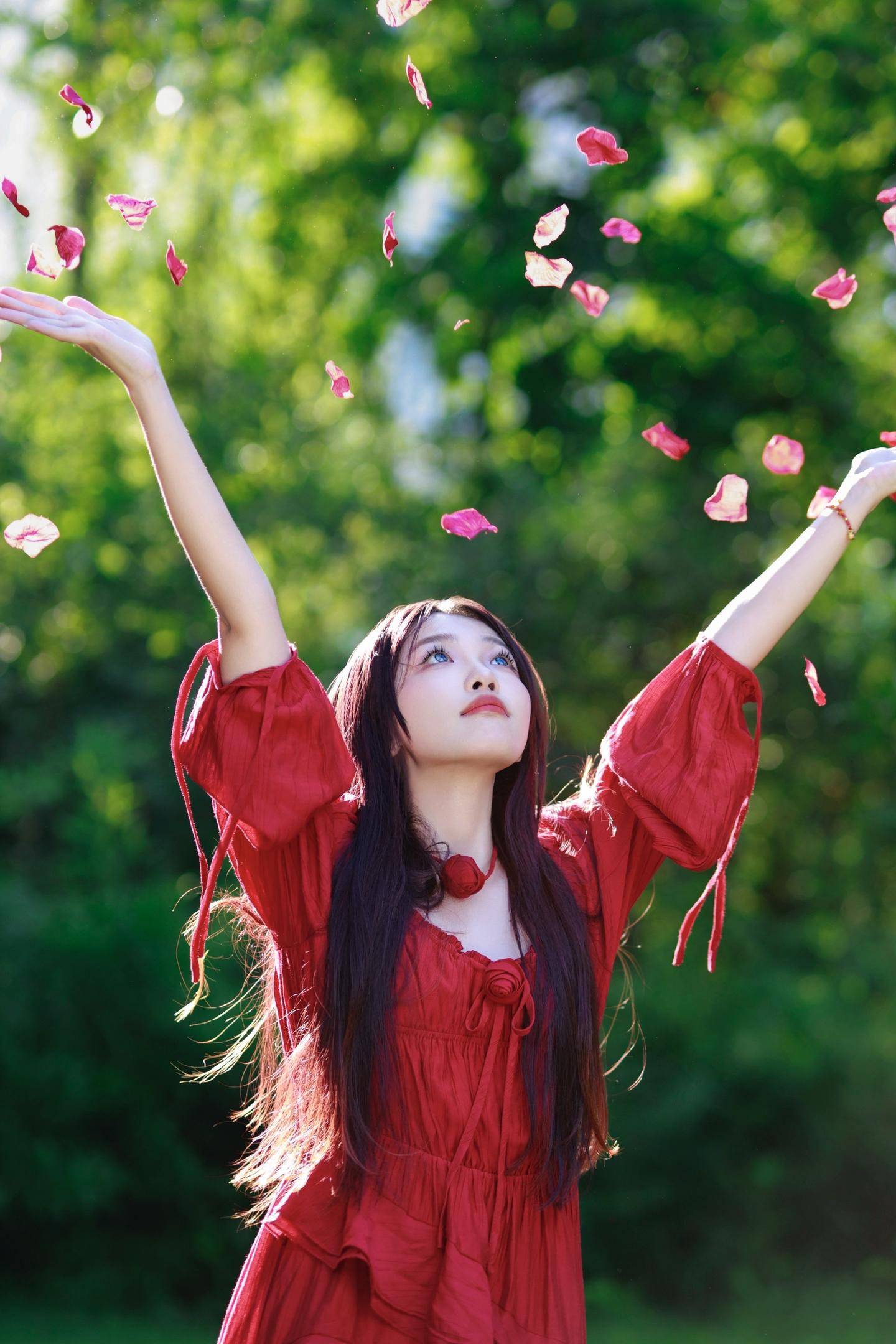 镜头里,她站在花树下抬头,阳光漏过指缝——原来日系写真的秘诀,是让时光...