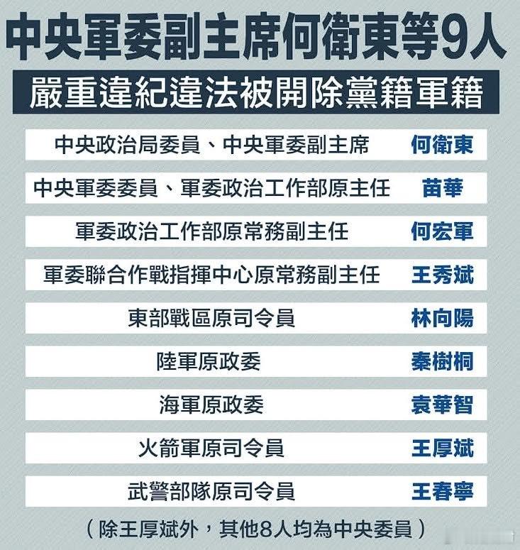 何卫东等9人被开除党籍军籍