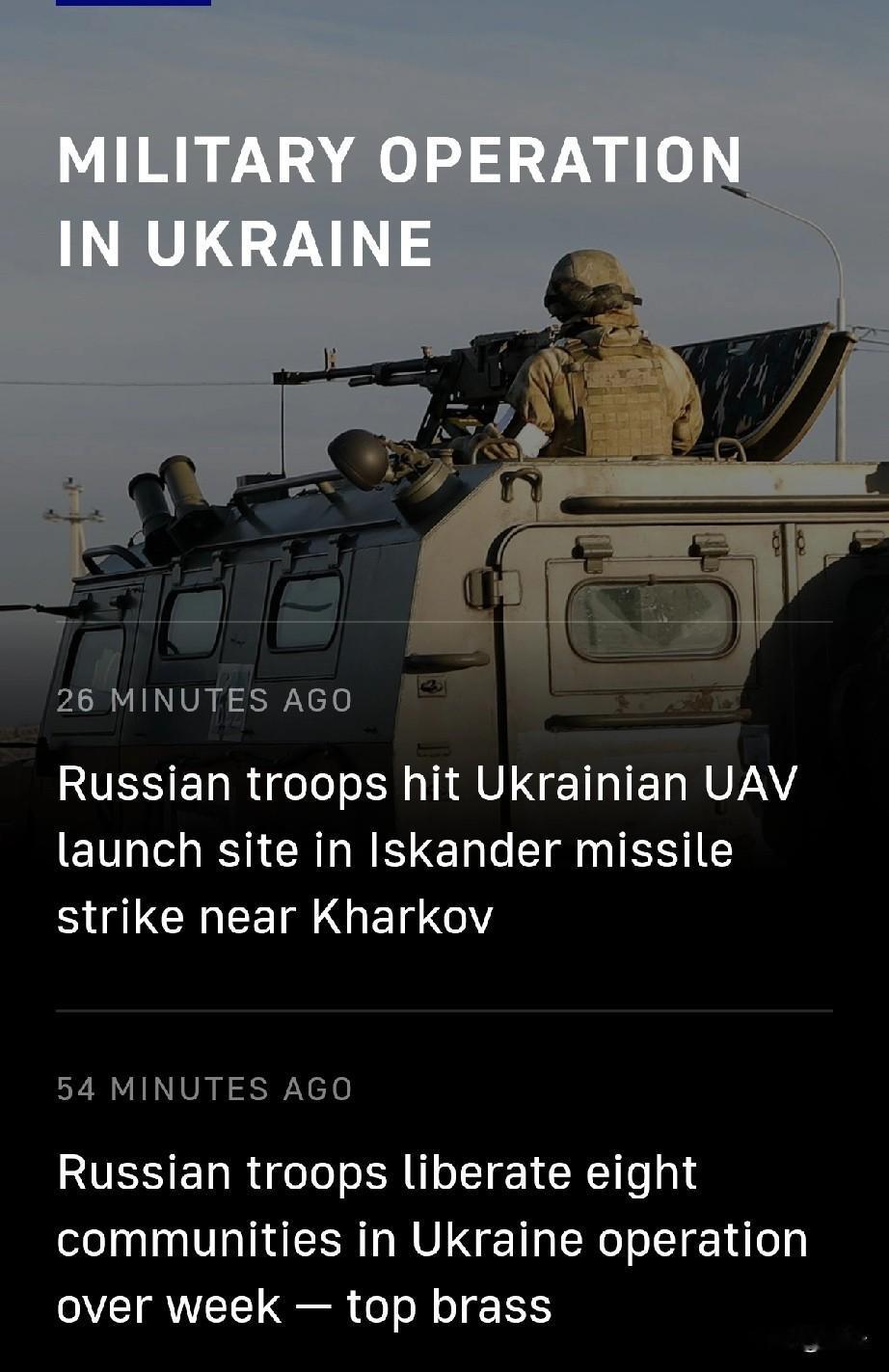 俄“伊斯坎德尔”导弹袭击哈尔科夫附近的乌无人机发射场 10月17日,塔斯社消息,周五俄罗斯国防部报道,俄罗斯军队用“伊斯坎德尔”导弹打击了哈尔科夫附近的一个乌克兰无人机(无人驾驶飞行器)发射场,摧毁了敌方装备和30名人员。 该部在一份声明中说,“所有发现的敌方目标均被摧毁,实时记录图像已确认。此次打击摧毁了4辆半挂卡车(65架‘卢季’远程无人机)、5个无人机发射器和30名乌克兰武装分子,其中包括无人机操作员、技术人员和卡车司机。” 该部上传了一段视频,显示“伊斯坎德尔”导弹打击了哈尔科夫以东50公里处马尔托沃耶定居点附近的远程无人机准备和发射场以及乌克兰军队运输远程攻击无人机的卡车。 周五,俄罗斯国防部周五报道,在10月11日至17日的一周内,俄罗斯军队在哈尔科夫州、第聂伯罗彼得罗夫斯克州和顿涅茨克人民共和国解放了8个社区,其中包括过去24小时内在乌克兰特别军事行动中解放的2个定居点。 该部在一份声明中说,“在哈尔科夫方向,北部作战集团部队通过果断行动解放了哈尔科夫州的季霍耶定居点;西部作战集团部队通过果断行动解放了哈尔科夫州的博罗夫斯卡亚·安德烈耶夫卡和佩尚诺耶定居点;中部作战集团部队通过积极果断的行动解放了顿涅茨克人民共和国的莫斯科夫斯科耶、巴拉甘和新帕夫洛夫卡定居点。” 它说,“过去一周,东部作战集团部队解放了第聂伯罗彼得罗夫斯克州的阿列克谢耶夫卡和普里沃利耶定居点。”
