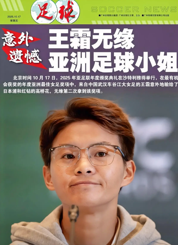 在亚足联举办的亚洲年度足球颁奖典礼前,王霜是亚洲足球小姐最大热门,因此另一位候选人日本球员高桥花甚至都没有出席颁奖典礼,因为她也觉得自己不如王霜。