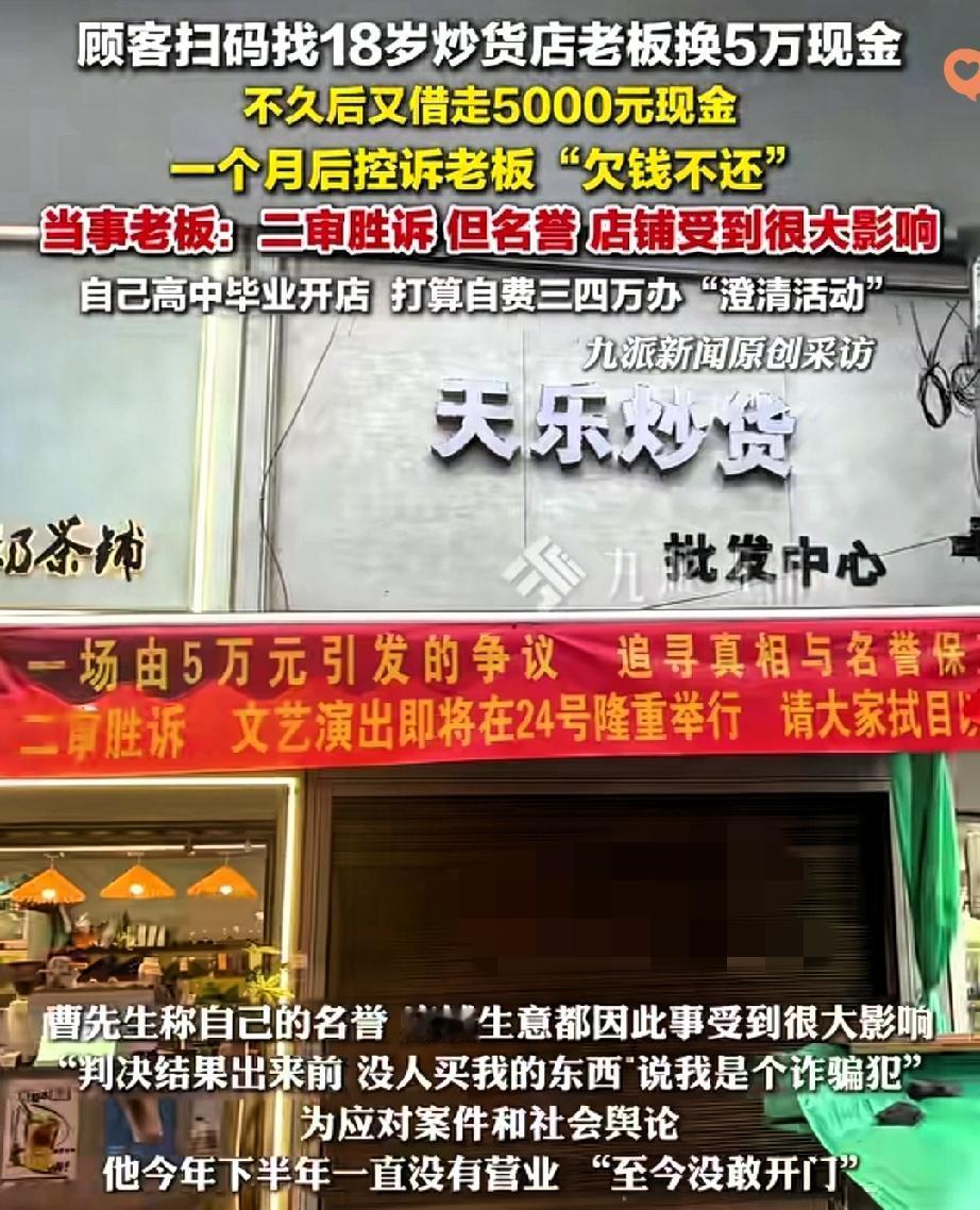 这哪是遇人不淑,简直是好心喂了狼! 湖南沅江18岁的炒货店小伙,好心帮顾客换5万现金,没成想对方转头就拿转账记录告他欠钱,逼着他打了两场官司。 还好法院够清醒,说陌生人之间没借条就借5万,根本不符合常理,终审直接驳回了对方的诉求。 可赢了官司又怎样? 小伙的生意和名声早被折腾得一塌糊涂,还得自掏三四万请剧团办澄清活动,相当于白干一两个月。 这事最戳人的是,善良没错,但没证据的善良太容易被算计。 转账备注“换现金”这几个字,就能避免后续所有糟心事。法律能还你清白,却补不了中间的损失。 你平时帮人办事会特意留证据吗?遇到过这种“好心惹麻烦”的情况吗?