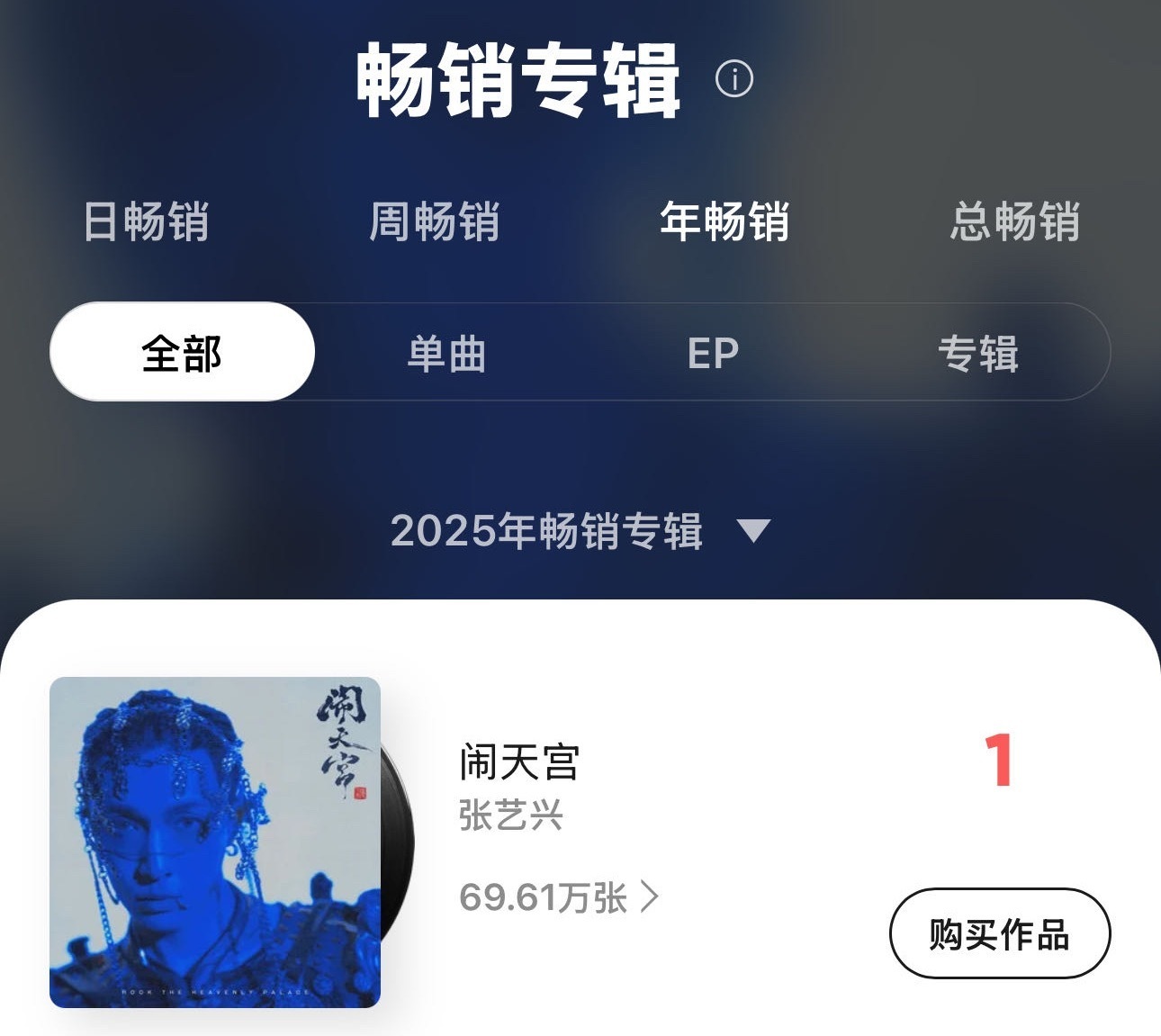 张艺兴新专辑闹天宫QQ音乐畅销专辑排行榜年榜第一 ![努力] ​​​