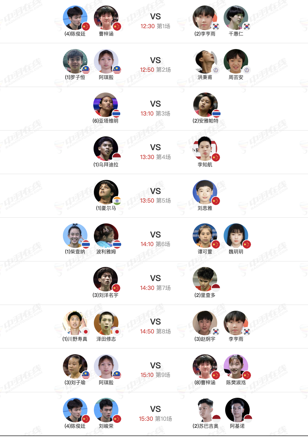 2025年羽毛球世青赛10月18日各单项半决赛赛程,12点30分开赛:1、陈俊