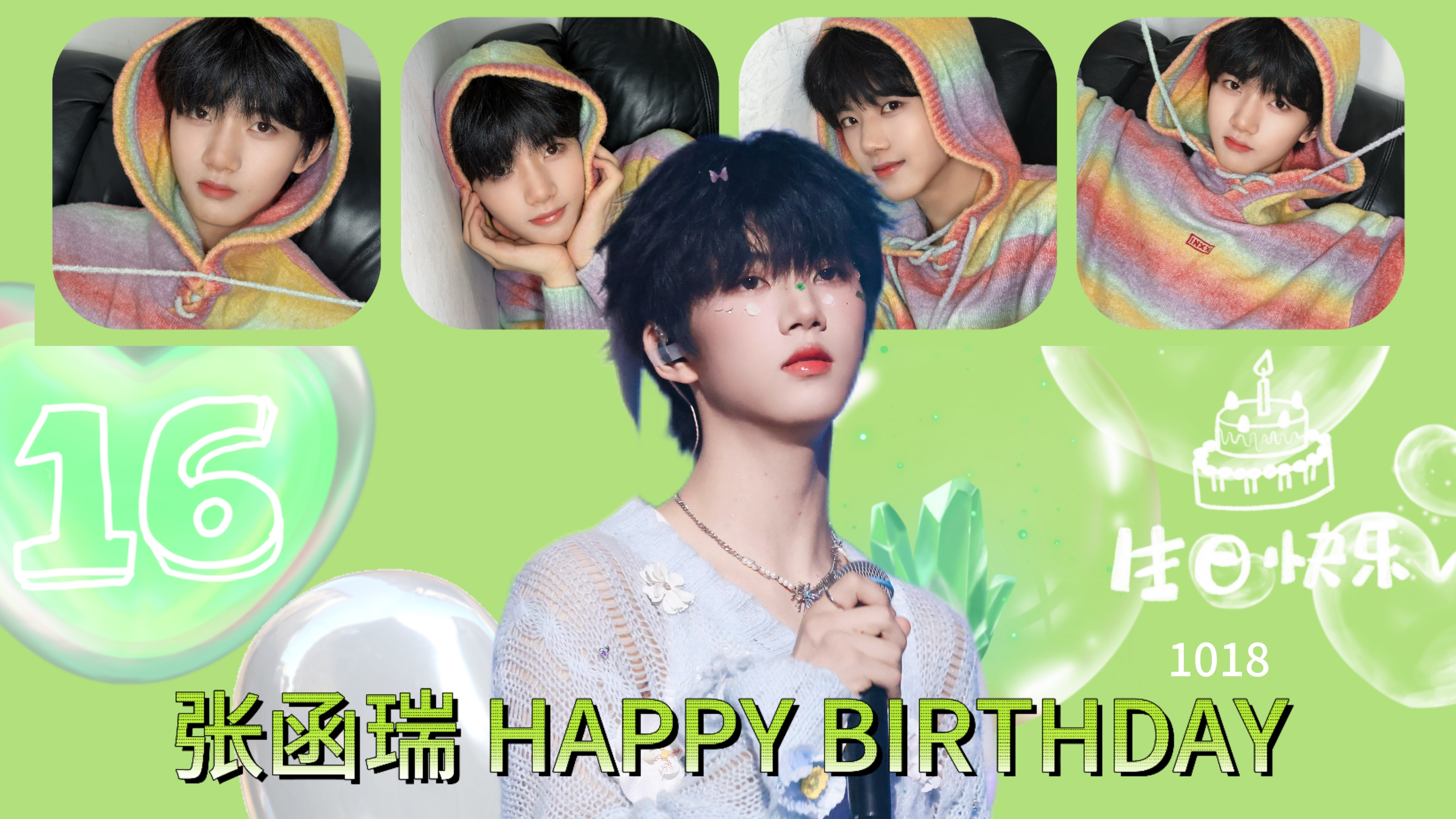 恭喜你迈入16岁的全新旅程!愿你在热爱的舞台上继续绽放光芒,每一次开嗓都能传递心动,每一段舞蹈都藏着热爱的温度。愿成长路上既有披荆斩棘的勇气,也有被世界温柔以待的幸运,在追逐梦想的日子里永远保持纯粹与炽热,书写自己的篇章,生日快乐🎂张函瑞 1018生日快乐