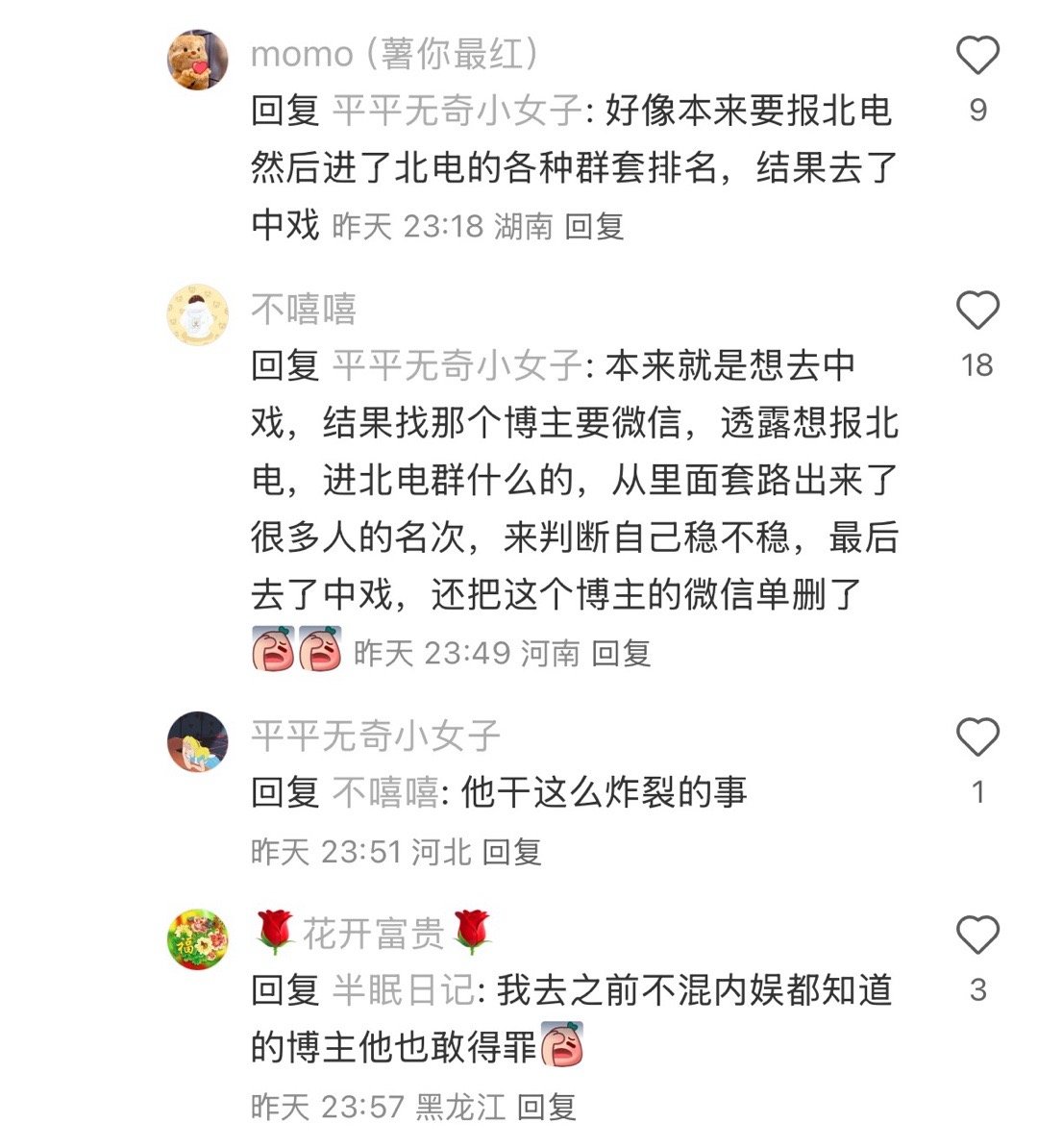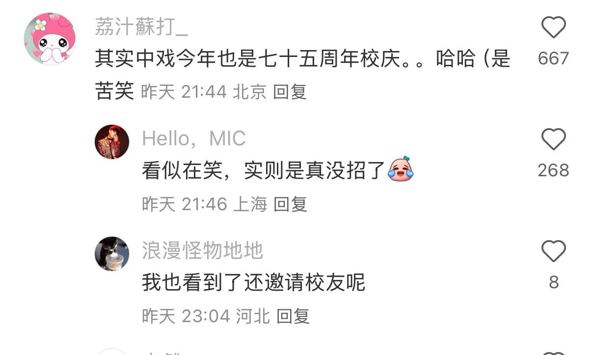 红薯🍠刷到这条[允悲]评论说中戏也是75周年校庆,然后还翻出了当初他考北电中戏那些事。