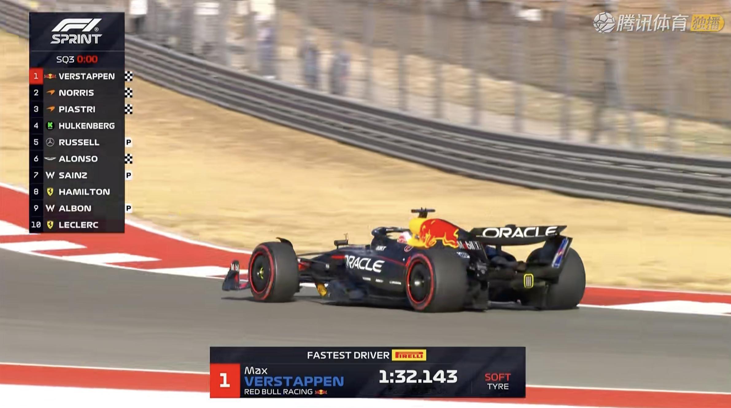 维斯塔怕0.071秒险胜诺里斯,连续三年在美国大奖赛夺得冲刺赛杆位,这是他在冲刺赛第10杆。
