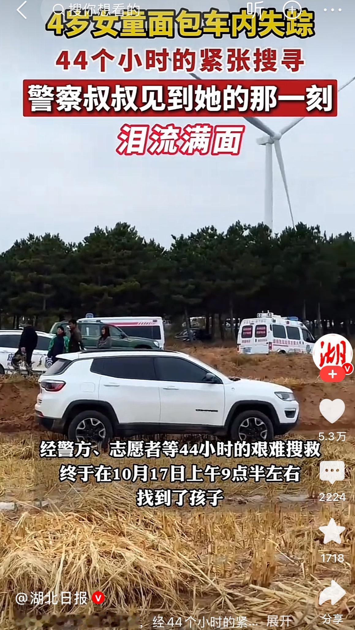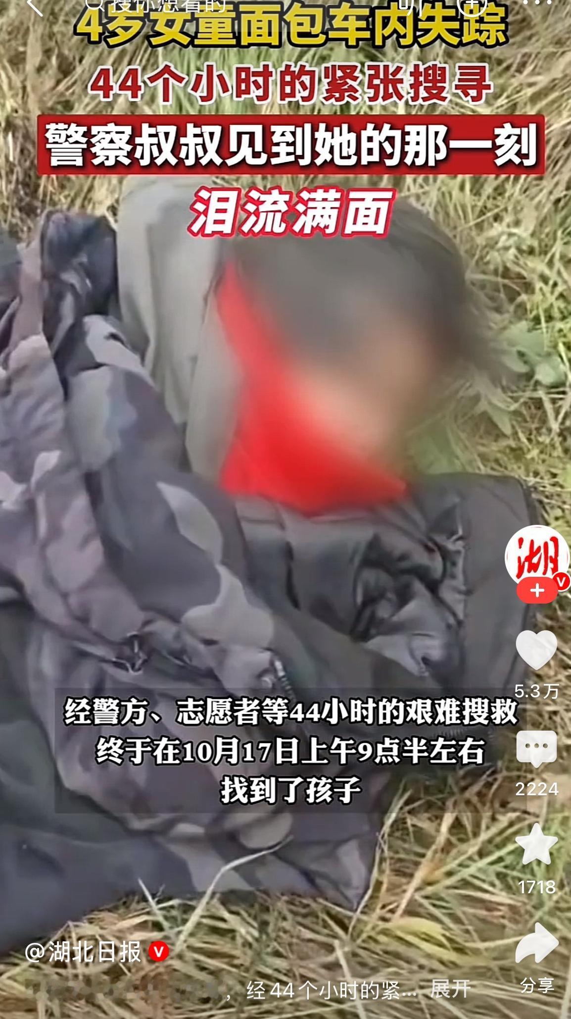关于辽宁朝阳4岁女童走失的事件,孩子已经成功获救。 2025年10月17日上午9