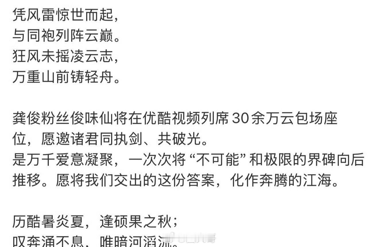 果真是偶像和粉丝的双向奔赴啦!龚俊的新剧《暗河传》即将开播,俊味仙还为龚俊的新剧包场30万座支持偶像新剧,就是说这样的苏暮雨,排场拉满了啊!坐等龚俊新剧slay啦~