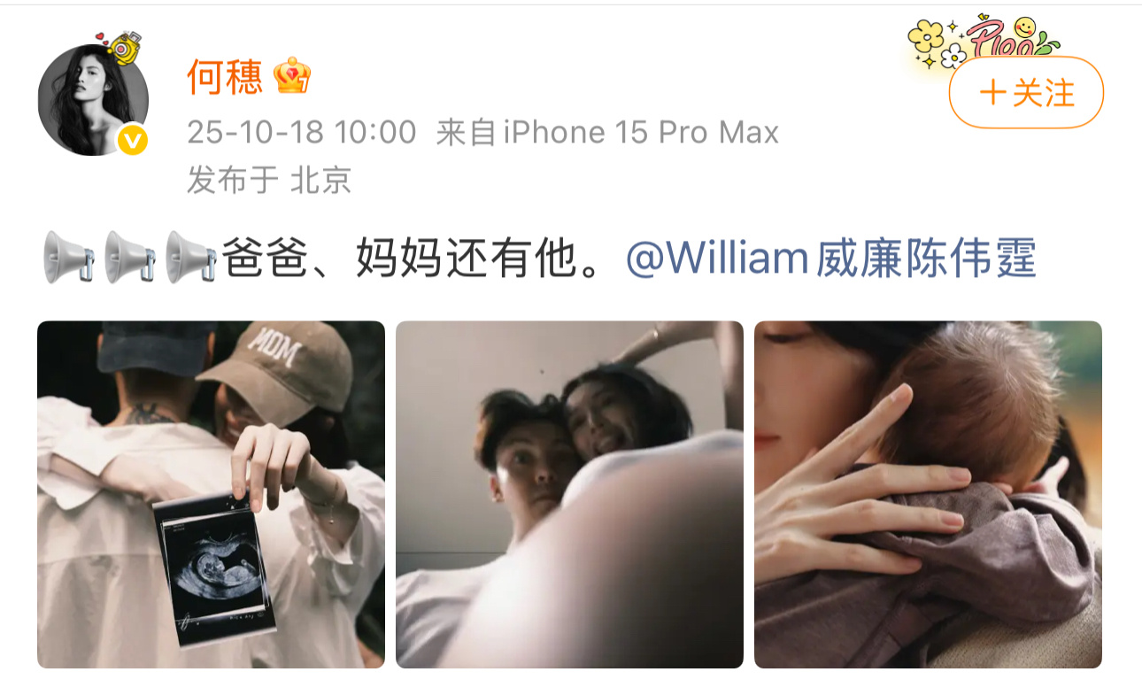 陈伟霆何穗官宣生子娱乐圈有新宝宝了!10月18日,和官宣生子![哆啦A梦吃惊]