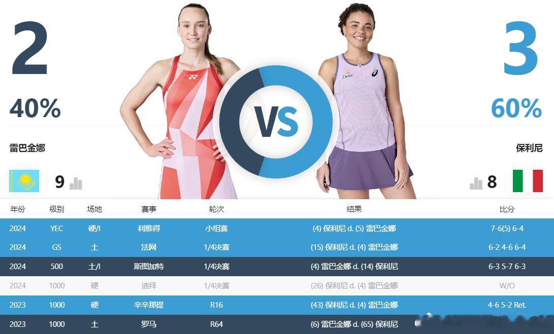 悬念1 莱巴金娜能否延续年终希望;宁波半决赛莱巴金娜vs保利尼,如果莱巴金娜获胜则继续保持冲击年终的希望;如果失利,则基本断送希望;莱巴金娜已经对保总两连败了;(比赛时间下午3点)