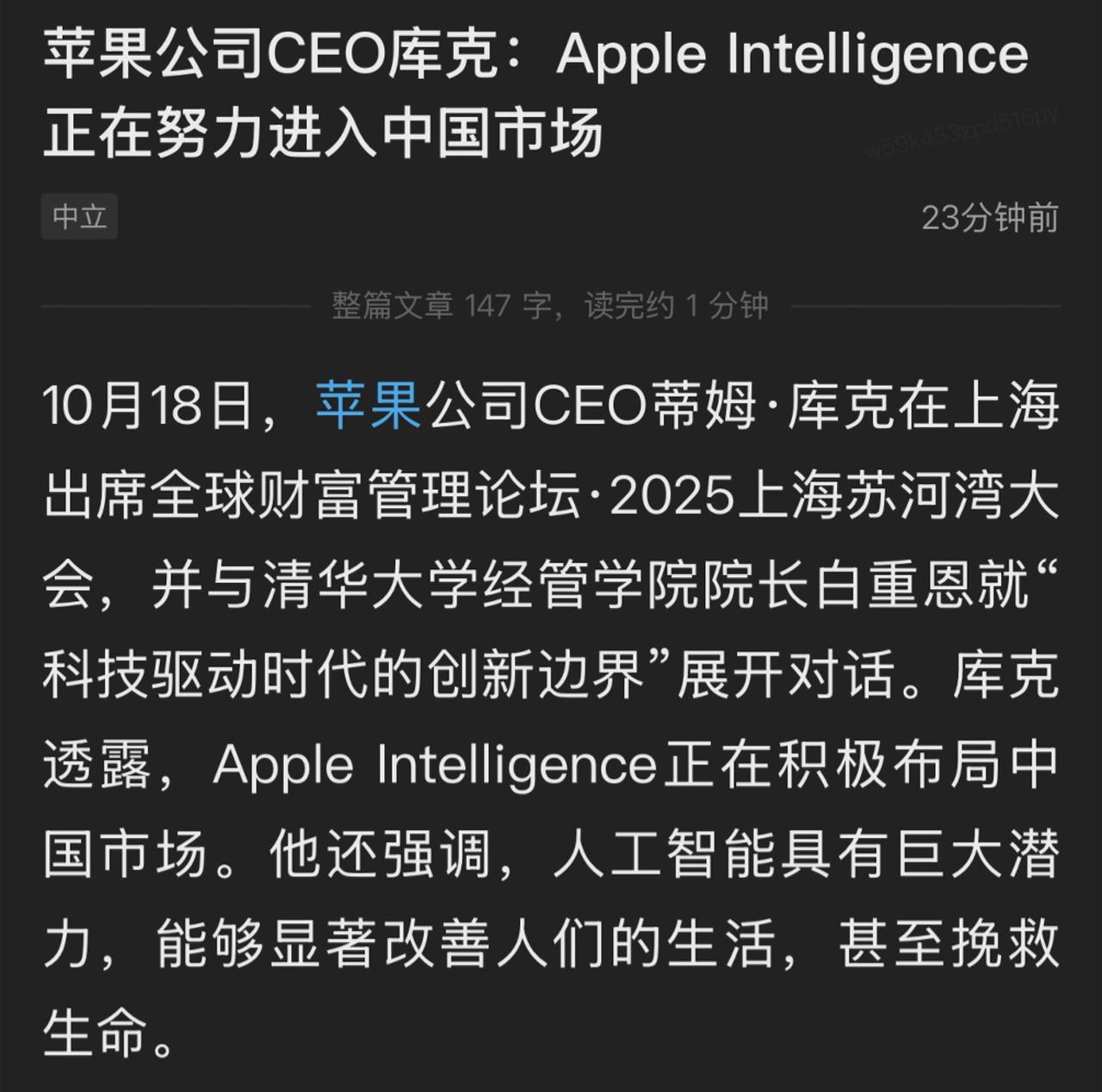 苹果AI能进入大陆吗?上热搜 分享 程序员 事件