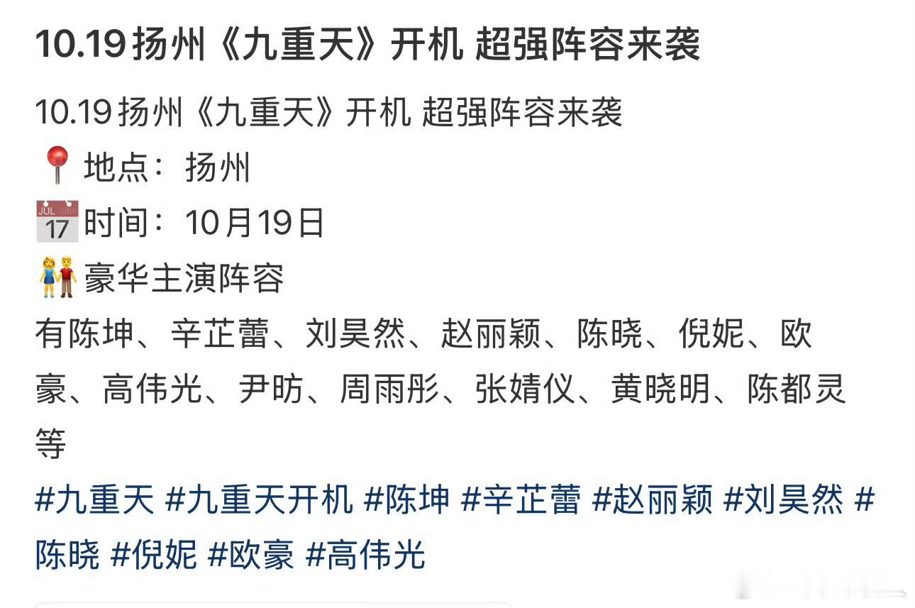 九重天今天开机,单元剧,阵容好强啊