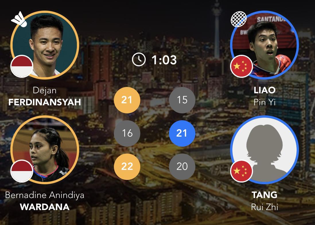 廖品逸/唐睿芝🇨🇳 15-21、21-16、20-22 🇮🇩德扬/伯纳丁