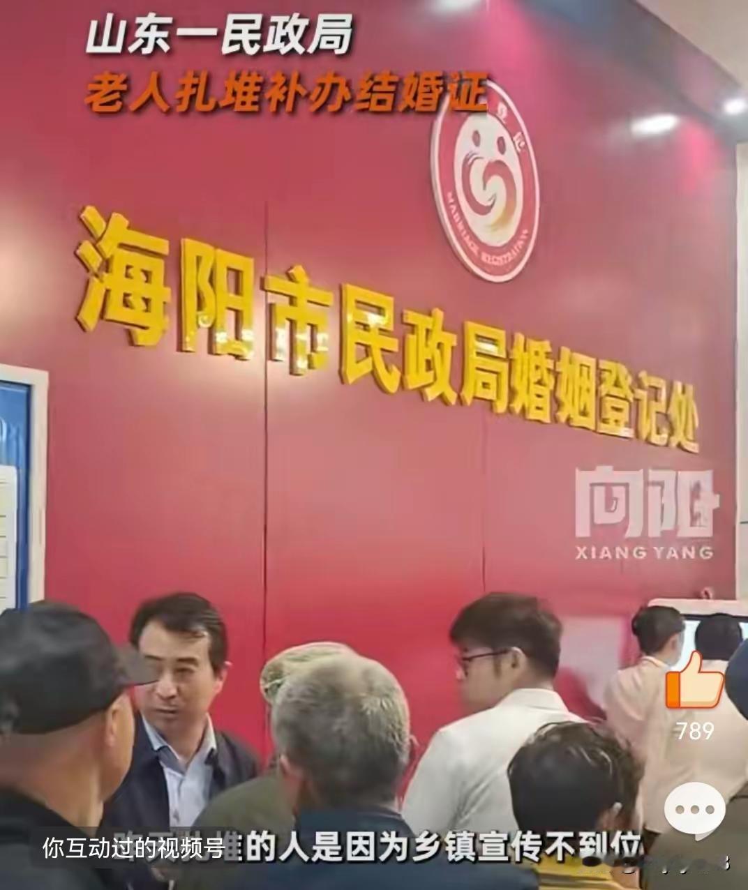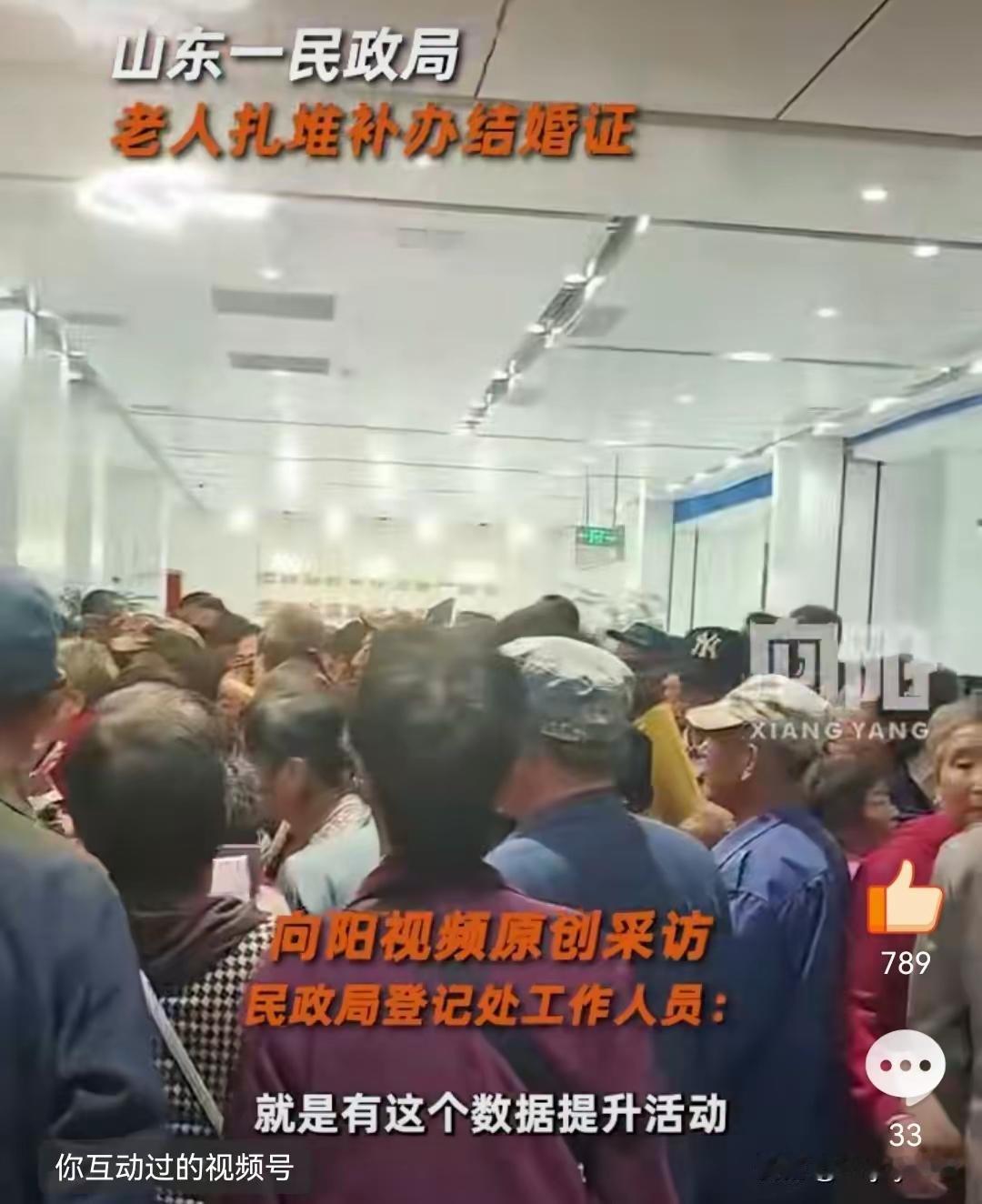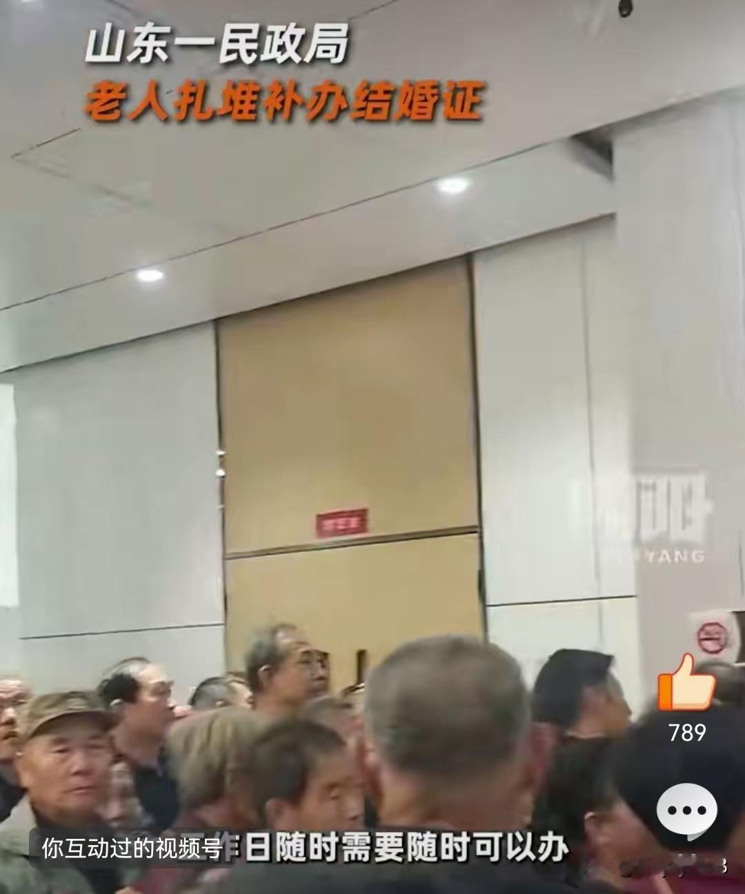 山东民政局清晨现长队,老人们扎堆补办结婚证!背后缘由暖人心扉 一张小小的结婚证,竟羁绊住了多少老人的生活步伐。当山东烟台民政局门口出现老年人排起的长队,真相着实令人暖心。 近日,山东烟台一家民政局刚一开门,便涌入大批白发苍苍的老人。他们并非来办理离婚,而是扎堆补办结婚证。现场视频呈现,民政局内人头攒动,其中大部分是老年人。 这则新闻展现出一个温暖人心的社会现象,折射出老年人对婚姻的重视以及对生活的坚守。老人们纷纷排队补办结婚证,背后藏着深厚的情感与生活故事。 可能的原因如下: 补办婚姻证明:部分老人或许因证件遗失、损坏,亦或是需要更新婚姻档案,以便享受相关的养老、医疗等权益。 纪念意义:对一些老人而言,结婚证不只是法律凭证,更是珍贵回忆与情感的象征。 特殊的家庭或个人需求:例如办理某些养老、遗产继承或其他法律事务时,需要提供婚姻证明。 此事也反映出社会对老年人情感需求的关注,凸显了尊重和关爱老年人的重要性。老人们以实际行动表达对婚姻的珍视,也让人体会到温暖与人情味。