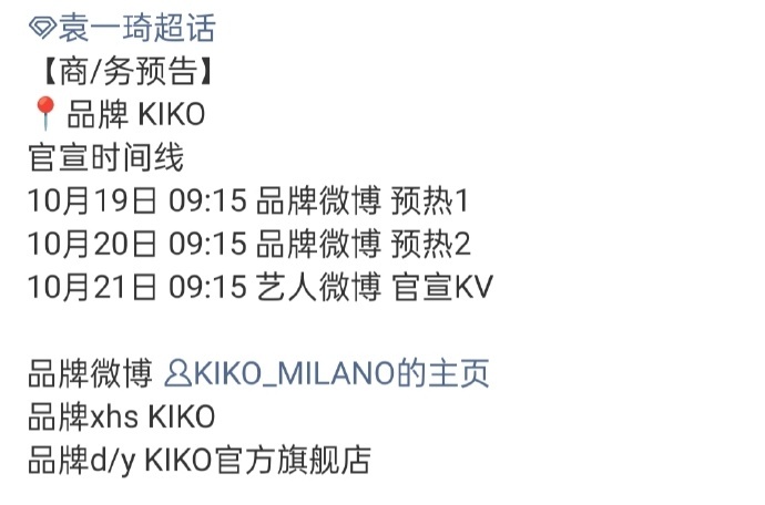 袁一琦×KIKO官宣节奏敲定!商务版图再扩容,好事根本停不下来✨ 今晚舞台更要狠狠期待住!
