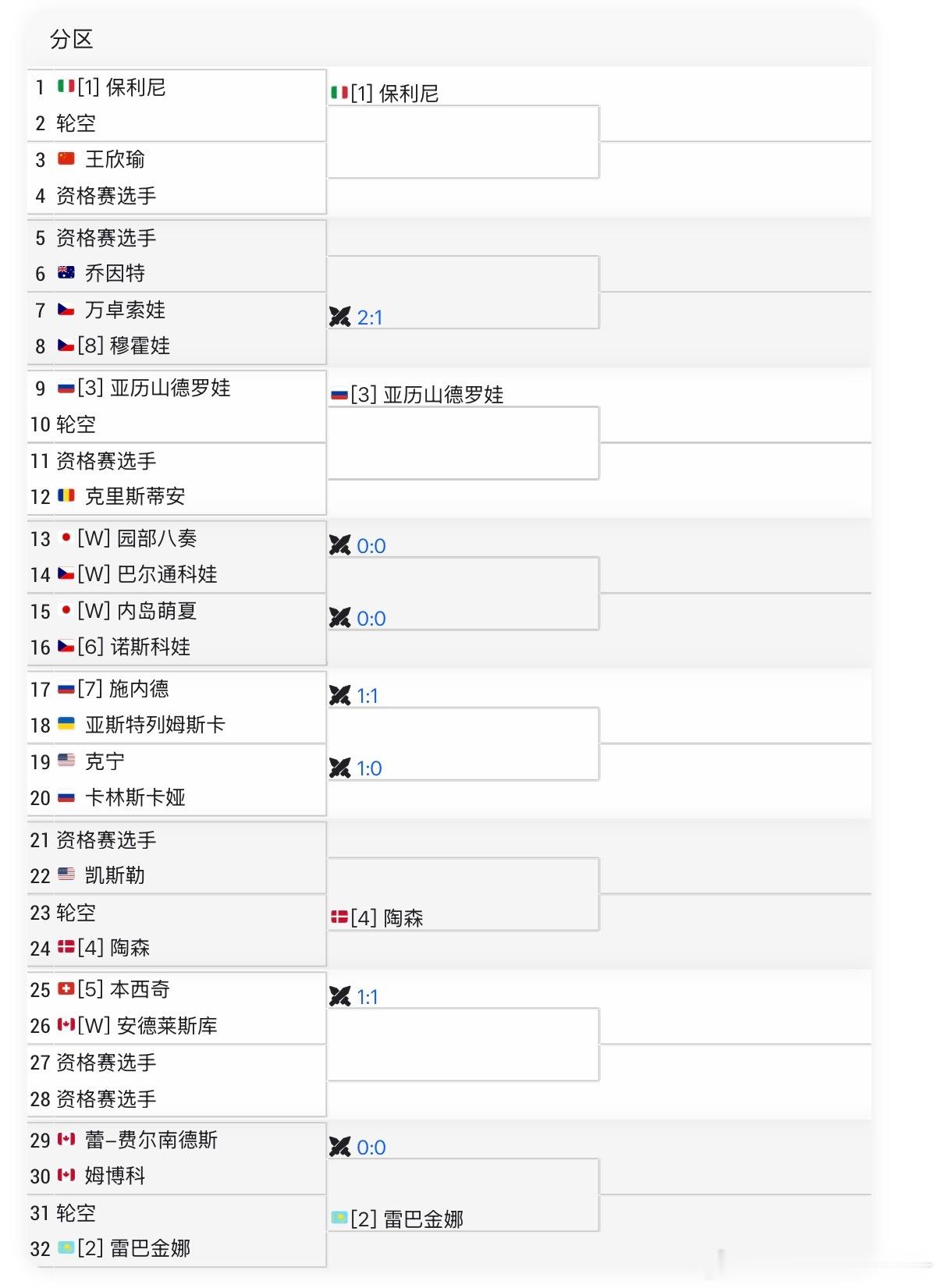 🇮🇹保利尼和🇰🇿莱巴金娜分列头两号种子
