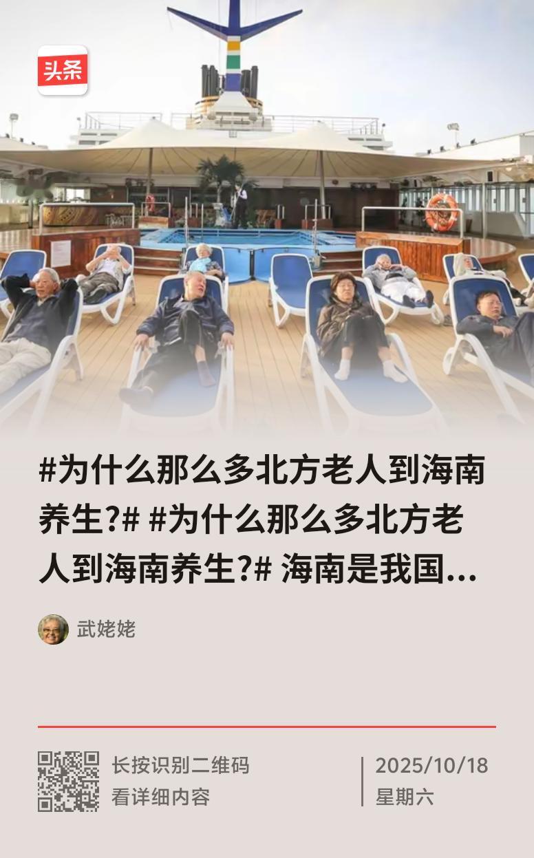 北方老人热衷去海南养生,原因可不少。海南气候优越,以牛岭为界,南边是热带,北边是亚热带。冬季温暖,气温很少低于15℃,对怕冷的老人来说简直是天堂。像东北冬季天寒地冻,老人只能窝在家里,而海南冬季能让老人自由活动。 而且海南空气湿度适中,不像北方冬季那么干燥,能缓解老人皮肤干燥、呼吸道不适等问题。充足的阳光还能促进维生素D合成,预防骨质疏松。 饮食上,东北重口味、高盐高油,海南则清淡,食材新鲜,四面环海海鲜多,对老人健康更有益。即便海南物价高,也挡不住老人去养生的热情。 海南过冬攻略 东北人三亚过冬 海南岛养老