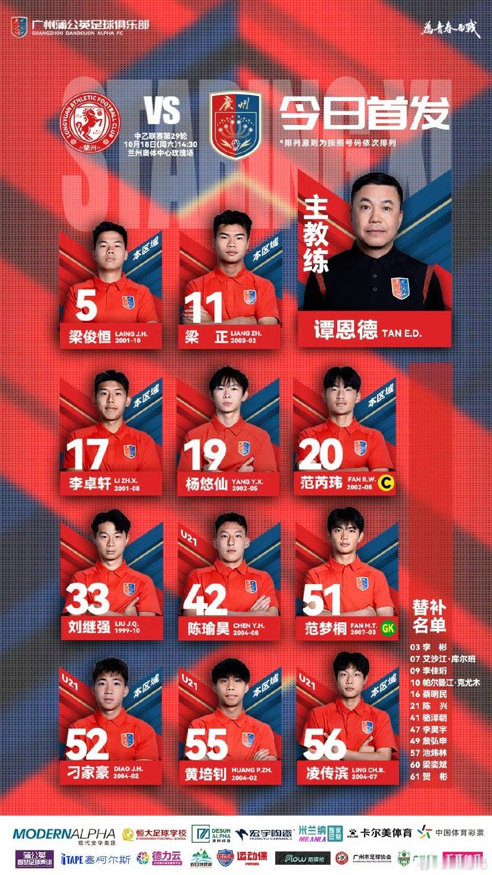 首发出来了!相信广州蒲公英德桦绿建面对赛季最后一个客场比赛一定全力以赴,在兰州继