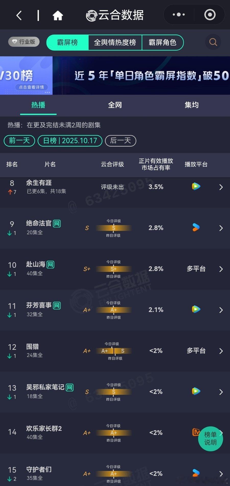 余生有涯3.5%,话题度还可以,感觉张彬彬和毛晓彤意外的搭。