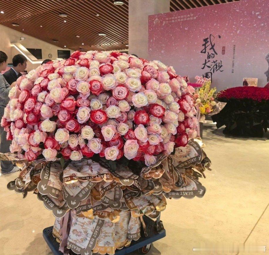 陈丽君的富婆粉丝送999朵厄瓜多尔玫瑰,野兽派西南区总监亲自过去插花,预祝演出圆满完成[努力]