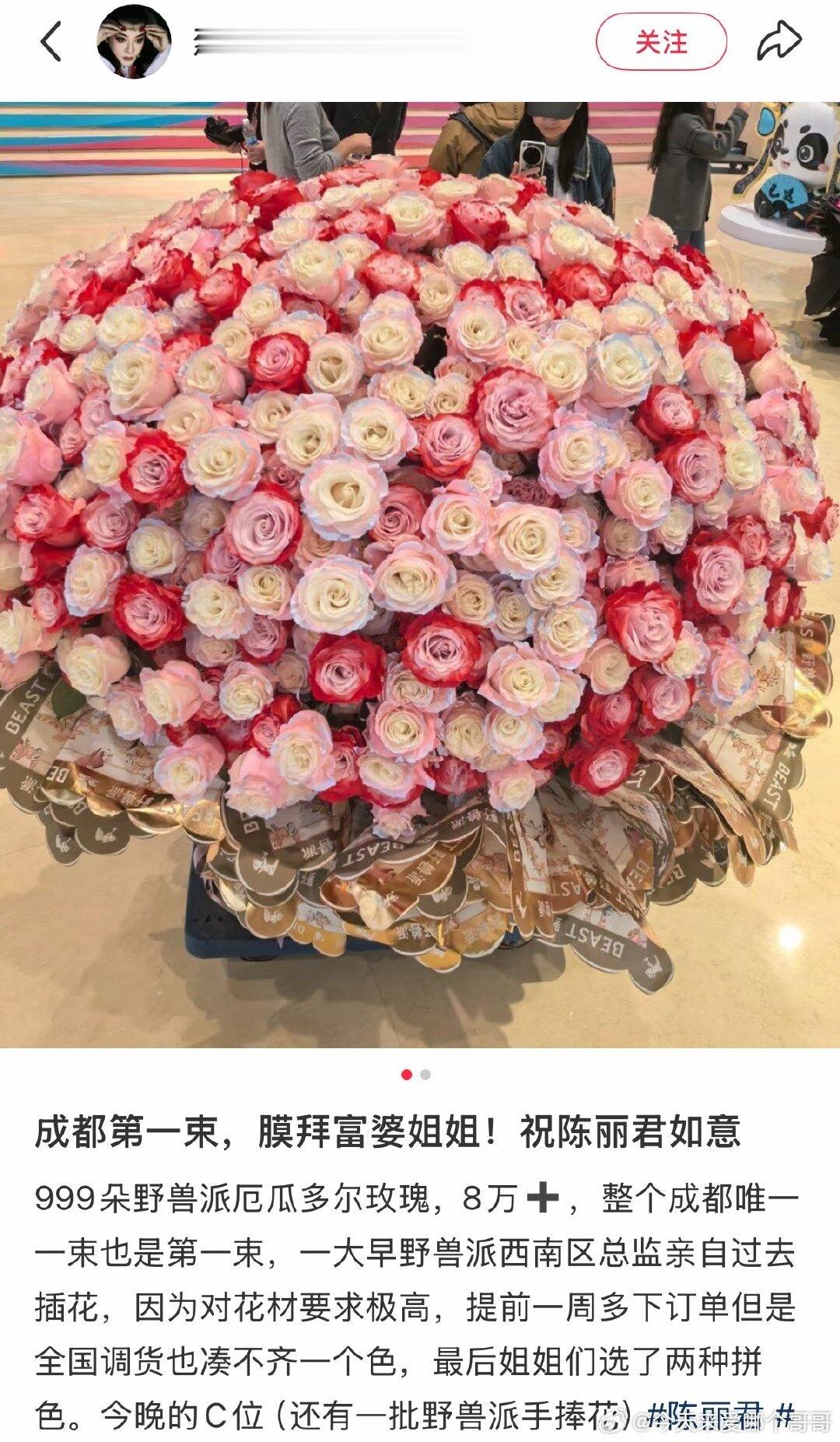 陈丽君的富婆粉丝送999朵厄瓜多尔玫瑰,野兽派西南区总监亲自过去插花,预祝演出圆