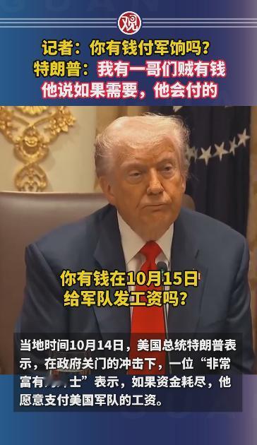 特朗普说,他有一哥们很有钱,如果有需要,他会付军饷! 美国联邦政府停摆已经17天了,这事儿搁谁身上都不舒服。美国社会一片混乱,联邦雇员拿不到工资,军队也眼瞅着要断粮。 就在大家一脸愁云惨淡的时候,特朗普又出来说了句让人哭笑不得的话。面对记者的追问,他拍着胸脯来了一句:“我有一哥们贼有钱,他说如果需要,他会付军饷!” 这话一说出来,全世界网友都忍不住乐了。其实,大家都知道,特朗普这人嘴上没啥把门的,啥都敢说。以前当总统是这样,现在重回白宫,还是这么“接地气”。 这次联邦政府停摆,影响可不小,军人、警察、联邦雇员全都盼着发工资。可特朗普倒好,直接把锅甩给了“有钱哥们”,仿佛美国政府没钱了,随时可以找朋友借点“救急”。 不得不说,特朗普的嘴皮子功夫,确实赢麻了。有网友调侃:“川普身边有钱人多得很,实在不行,拉个微信群,大家AA制,军饷凑一凑,说不定还真能挺过去!” 这画面,不知道的还以为美国军队要靠“众筹”过日子了。玩笑归玩笑,现实却一点都不轻松。美国政府停摆,最受影响的其实是普通老百姓。 公务员发不了工资,军队的士气也跟着低了下去。想当年,美国军人一直以“世界最强”自居,可如今连工资都要“靠朋友”,这日子别提多难受。 而且,这种停摆已经不是第一次了。每次两党扯皮,老百姓就要跟着遭殃。特朗普这次虽然重新上台,但面对国会那帮“老油条”,想要啥都按自己意思来,真没那么容易。 说到底,特朗普那句“我有个哥们很有钱”听着像段子,但反映出来的问题却挺扎心。美国表面看着风光,其实财政赤字一年比一年高,国债都快破天际了。 别说军饷,连政府日常运转都要靠举债度日,现在到了连工资都发不起的地步,靠“有钱哥们”真能解决问题吗? 美国社会分化严重,贫富差距极大。特朗普说的“有钱哥们”,在美国确实不少。可这些超级富豪大多只顾自己腰包,真让他们掏钱贴补政府,他们未必乐意。 哪怕真有人愿意出手,那也不是长久之计。一个国家的军队,不能靠“友情赞助”来养活,这事儿搁哪国都是天大的笑话。 其实,特朗普每次遇到难题,就喜欢用点“另类幽默”转移矛盾。表面上是开玩笑,实际上是在给自己找台阶下。 把责任推给“有钱哥们”,一方面能表现自己“人脉广”,另一方面也能激起选民共鸣,毕竟美国人还是挺吃这种“大哥式幽默”的。 但玩笑归玩笑,老百姓只关心能不能按时发工资,军队只关心有没有钱吃饭。特朗普再怎么嘴皮子溜,日子还得靠真金白银来过。美国的制度短板,每一次停摆都暴露得一清二楚。 说到底,特朗普那句“我有一哥们贼有钱,他能付军饷”,表面上是幽默,背后却是美国政治的尴尬现实。一个超级大国,连军饷都要靠朋友兜底,这画面实在有点魔幻。 对于咱中国来说,这种局面其实也提醒了我们:稳定压倒一切,老百姓的日子过得舒心才最重要。 美国该反思的不是有没有“有钱哥们”,而是怎么让政府正常运转,不要让老百姓跟着遭殃。最后,送特朗普一句话: 兄弟再有钱,也顶不上一个靠谱的政府。美国要想“赢麻了”,光靠嘴炮和段子,可不够用! 参考资料: 《记者:你有钱付军饷吗?特朗普:我有一哥们贼有钱,他说如果需要,他会付的》——观察者网