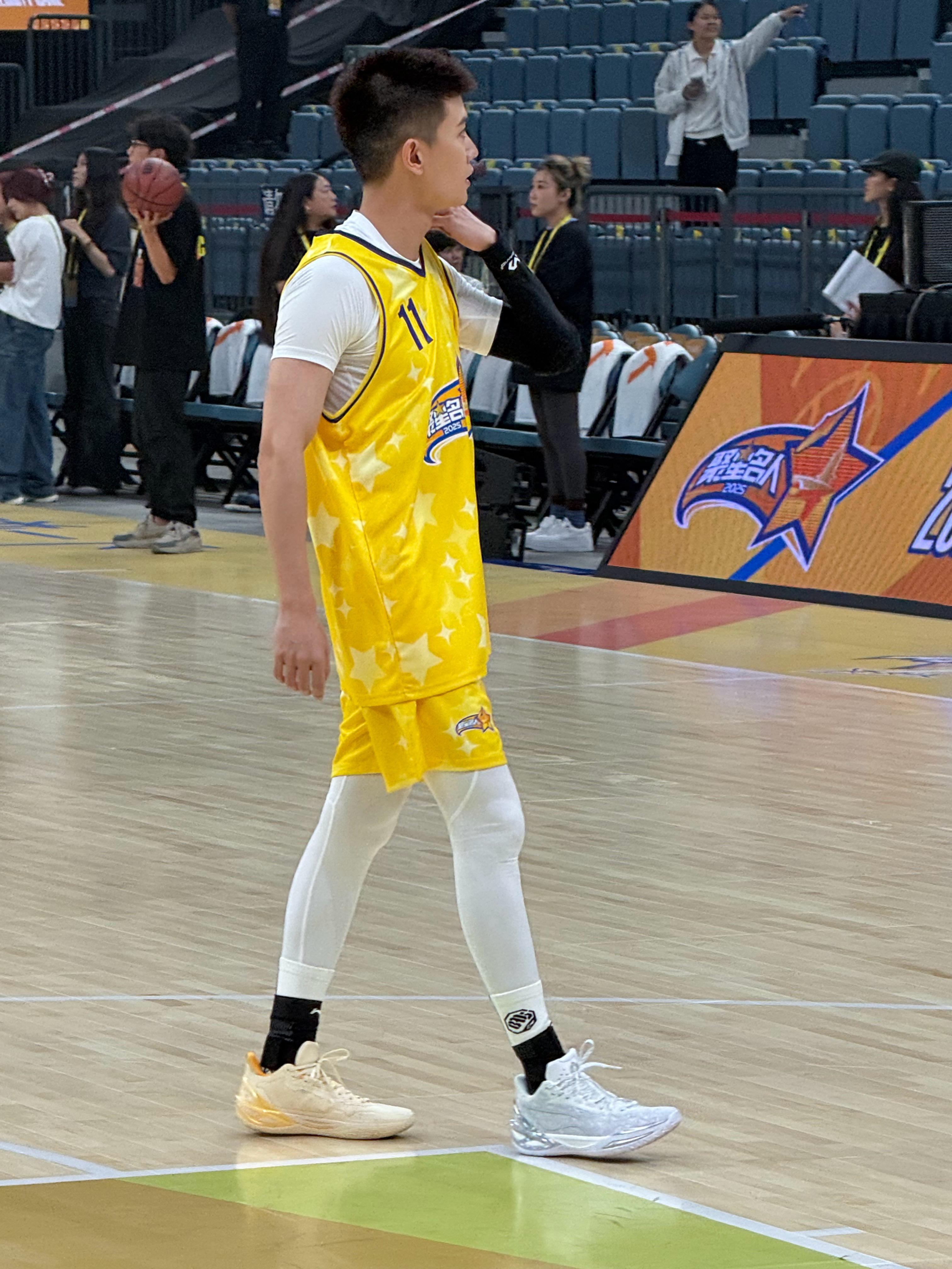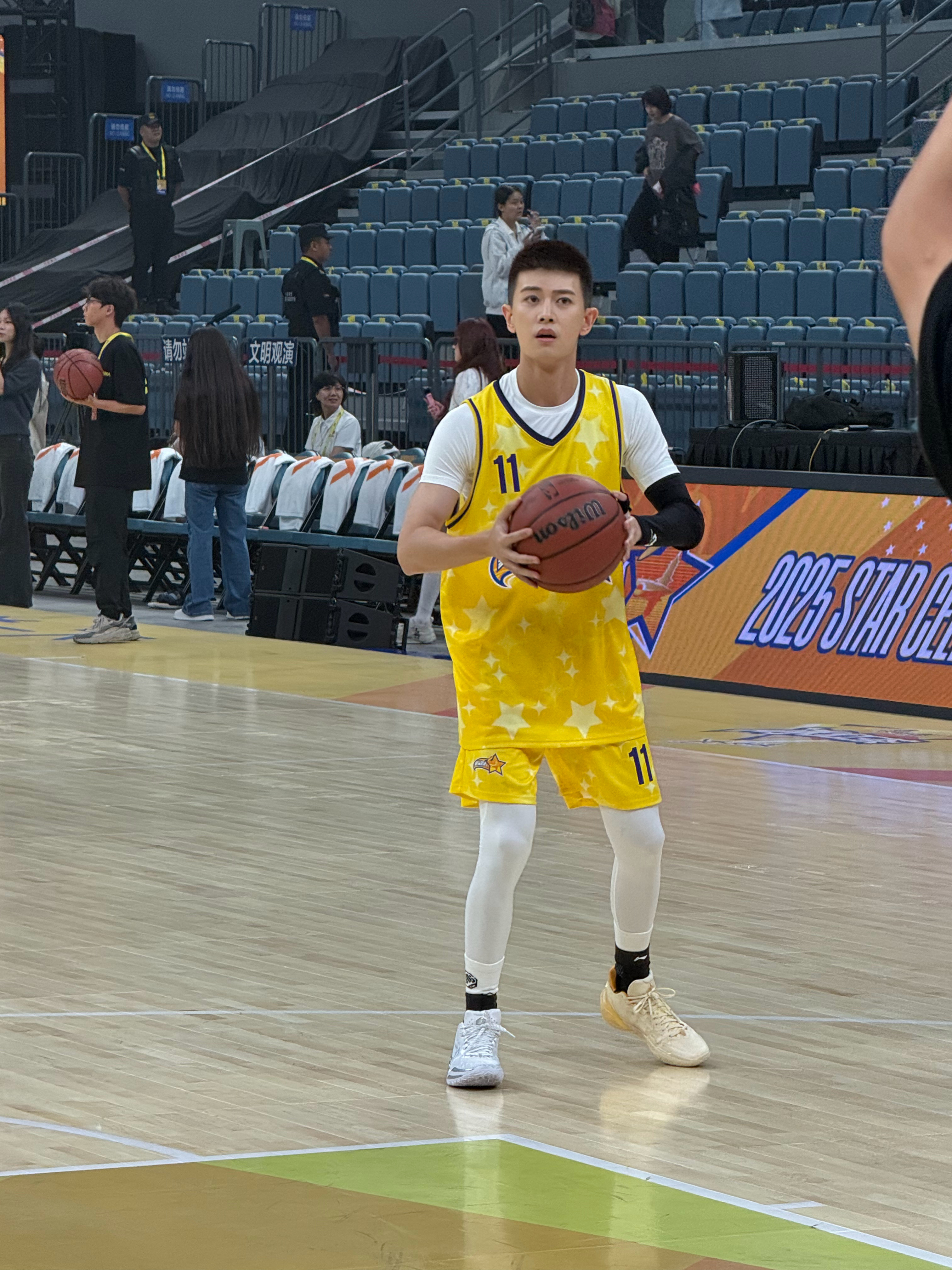 任嘉伦[超话]聚星名人赛2025聚星名人赛任嘉伦 名人赛赛前投篮训练,任嘉伦穿了