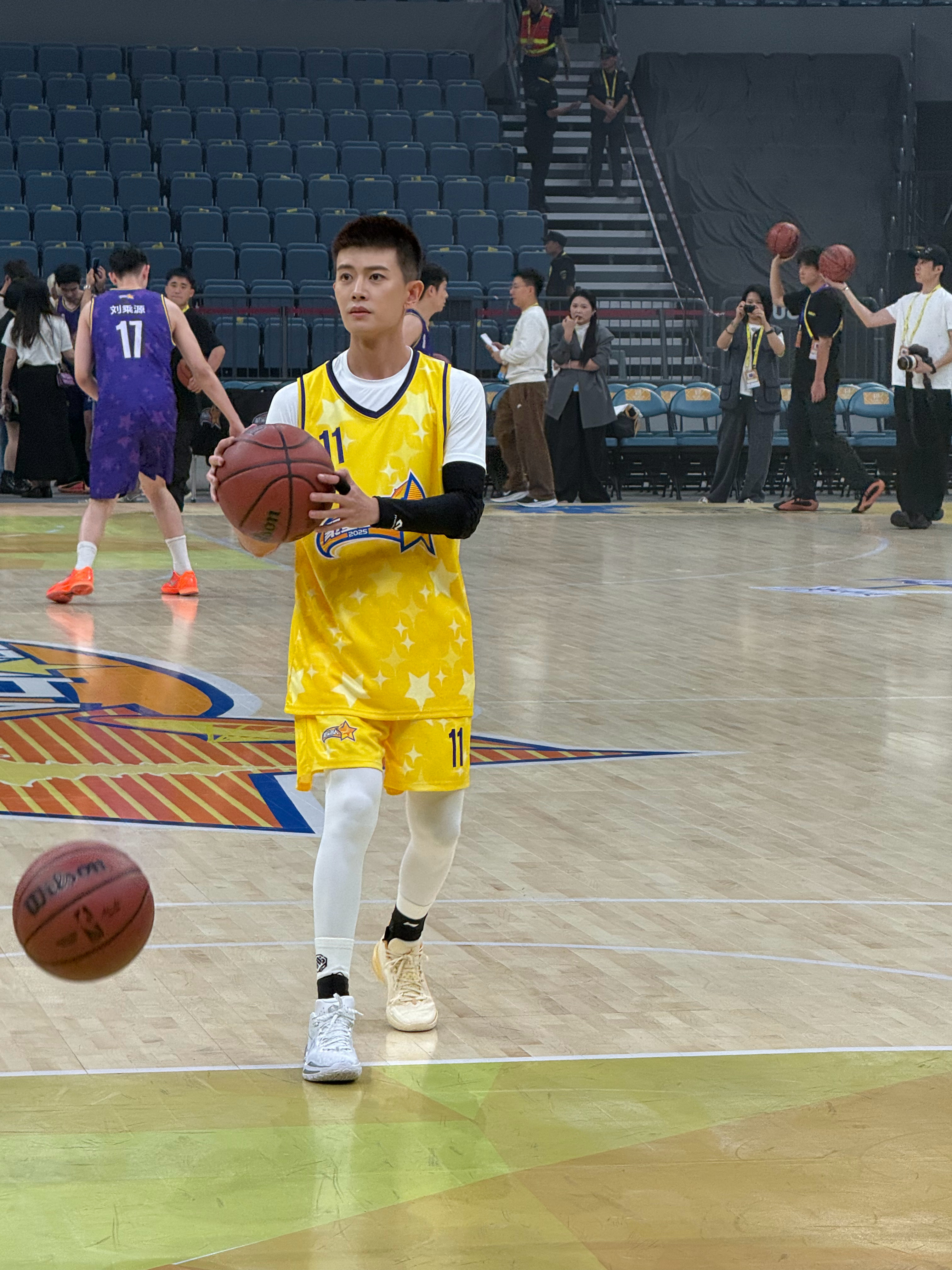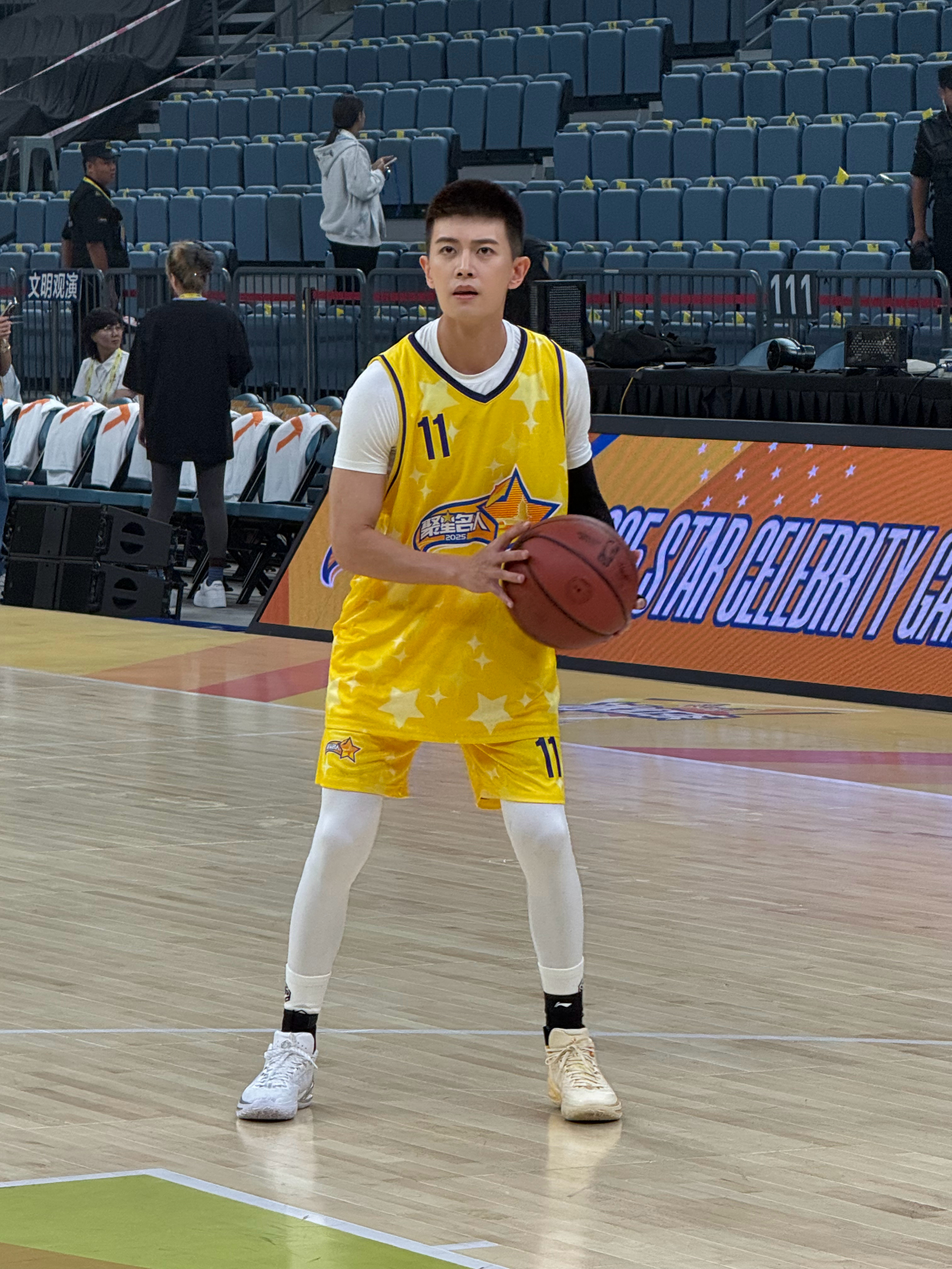 任嘉伦[超话]聚星名人赛2025聚星名人赛任嘉伦名人赛赛前投篮训练,任嘉伦穿了