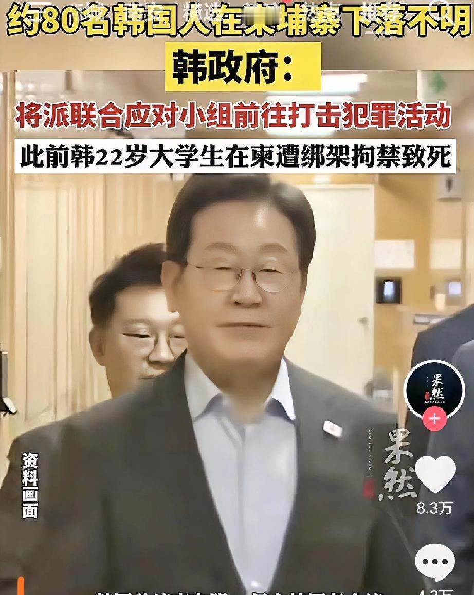 最近柬埔寨这事儿, 真是越闹越大了。 那个22岁的韩国大学生在柬埔寨被绑架致死案,阴影还没散呢,现在又爆出80多人集体失联,搁哪个国家都得急眼。这说明那边的犯罪活动已经不是零星个案,简直有点猖獗了。 李在明总统在会上说得挺直接的,核心意思就两点:第一,救人第一。所有部门的行动都必须把受害者的安全放在最高位置。第二,要快,要准。得赶紧帮这些被困的公民回国。这话听起来是官方表态,但背后透着着急,毕竟那是80多个活生生的人,背后是80多个家庭在提心吊胆。 那这帮人是怎么没的呢?虽然官方还没定论,但大家心里基本都有谱。大概率又是那些老套的骗局——什么“高薪客服”、“电竞游戏推广”、“度假村高薪工作”,把人骗过去之后就没收护照,关进某个园区里,逼着他们搞电信诈骗。不从?那就挨打、挨饿,甚至像那个不幸的大学生一样,把命都丢在那里。柬埔寨一些地方,现在简直成了跨国犯罪团伙的“法外之地”。 所以,韩国政府说要派联合应对小组过去,可不只是去旅游的。他们是带着任务去的:一要跟柬埔寨警方合作,端掉这些犯罪窝点;二要千方百计把这80多人找到并救出来。这任务难度不小,毕竟强龙难压地头蛇,需要两国紧密配合才行。 这件事也给所有想出国闯荡的人提了个醒:天上不会掉馅饼。尤其是去一些治安比较复杂的地方,真得把眼睛擦得雪亮。希望这次政府能动真格的,不仅把人平安救回来,也能狠狠打击一下犯罪分子的气焰,让柬埔寨别再成为韩国人的“噩梦之地”了。