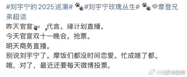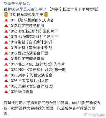可把刘宇宁粉丝忙坏了 本月粉丝界最闪耀的忙碌之星当属摩饭!追着刘宇宁的剧和综艺,享受着视听盛宴,新歌一出来就迫不及待分享,全国各地演唱会现场都有他们的身影,忙得热火朝天!