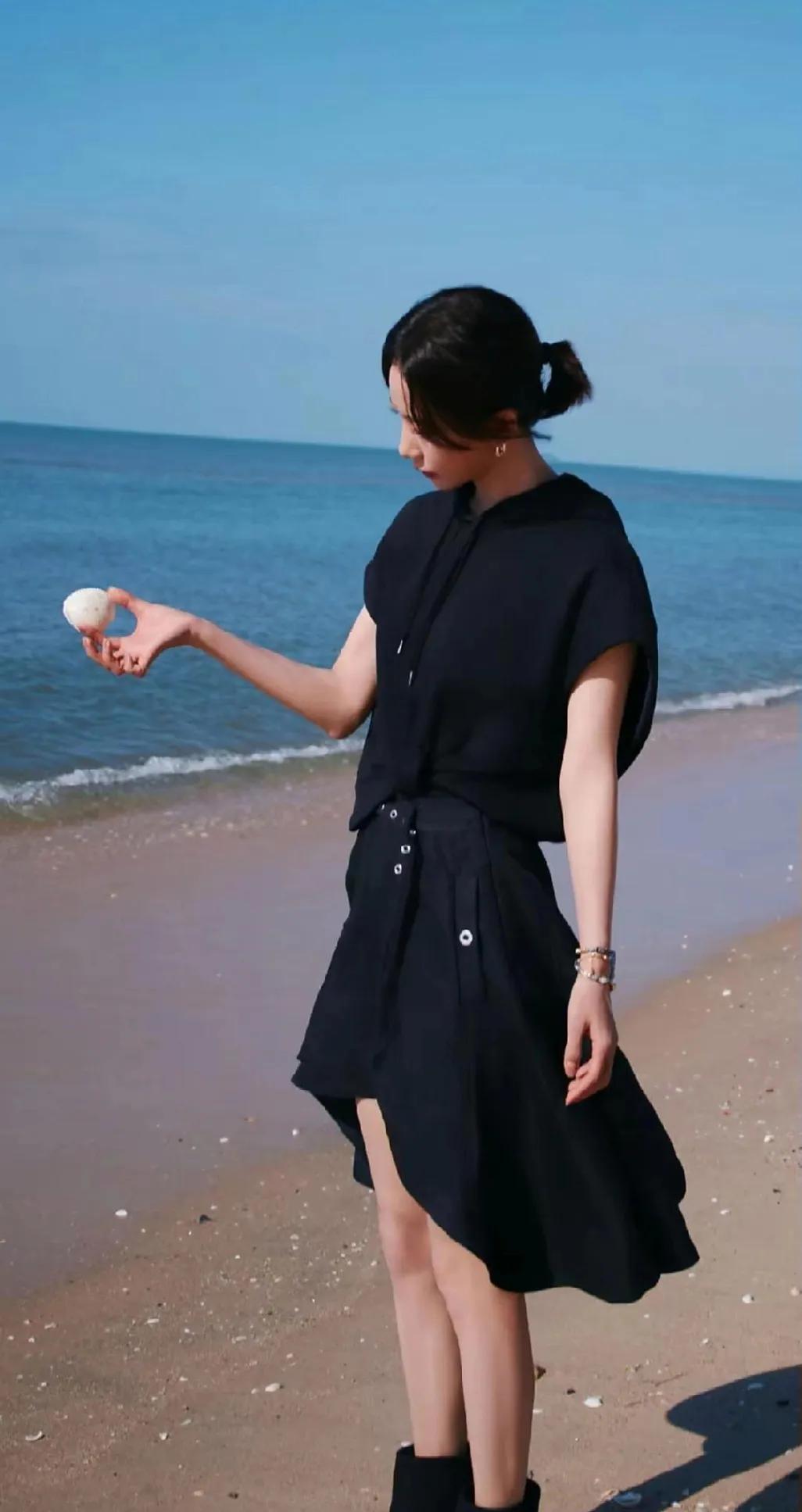 王珞丹汕尾海边大片,松弛感拉满 王珞丹在《假期中的她们》汕尾站, 拍出了一组超绝海边大片! 这次出镜,她选择了黑色连帽裙装,简约又不失个性。漫步在沙滩上,随性又自在,每一个步伐都仿佛踏在时尚的节奏点上 。金色耳饰的点缀恰到好处,为整体造型增添了一抹精致的亮色。 在蓝天碧海的映衬下,王珞丹的笑容格外动人,那不经意间展露的侧颜,更是充满了故事感,仿佛在诉说着独属于这片海滩的浪漫与温柔 。 不得不说,王珞丹在这组大片里展现出的松弛时尚感,真的太让人难以抗拒啦,谁看了不说一句绝!