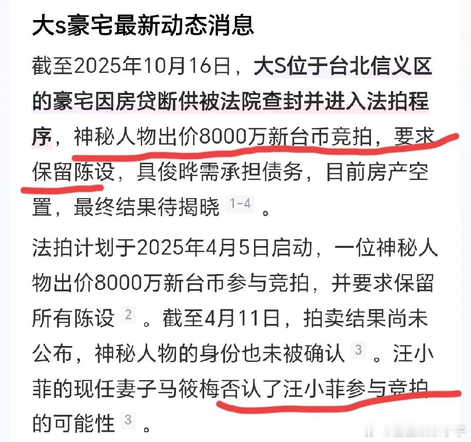 然而,最新消息表明,大S位于信义区的那套豪宅已经处于查封和法拍的状态啦。小S要是还想去姐姐家吃烤肉,这房子的问题得先解决才行。但就目前的情况来看,没发现她有什么动作呢。之前倒是有个愿意出8000万竞拍的神秘人,也不知道这人会不会是具俊晔呀?