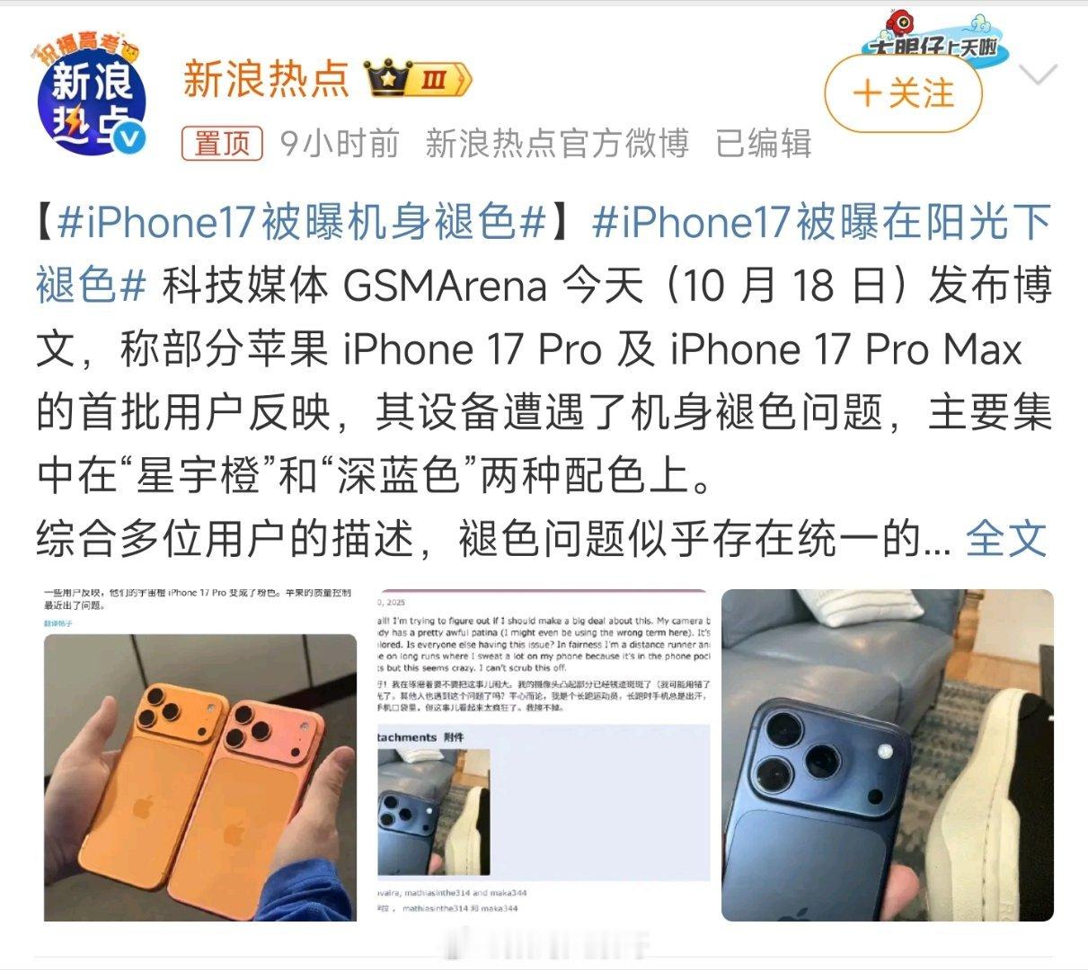 iPhone17被曝机身褪色这难道是隐藏福利:晒机免费换色?[思考][思考][思考][思考]