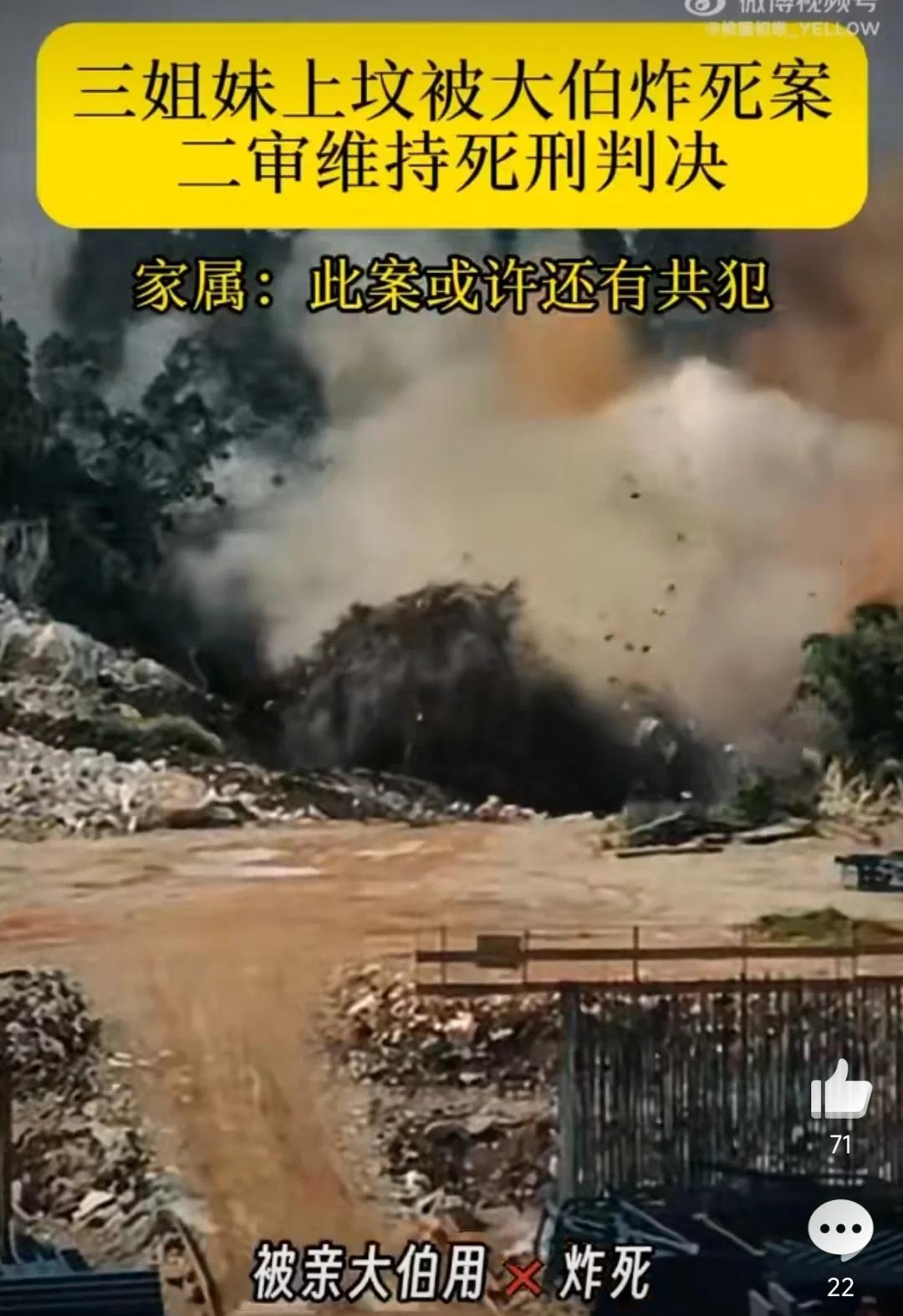 炸死3侄女的大伯执行死刑!可这事儿还有更揪 炸死3侄女的大伯执行死刑!可这事儿还有更揪心的隐情 今儿个刷着新闻,心里又沉又堵得慌,邯郸那个炸死仨侄女的大伯王某东,终于是被执行死刑了,就在10月14号上午。 这案子当初听得人后背发凉,亲大伯对亲侄女下这么狠的手,到底是多大的仇?说起来,根源就是那点耕地纠纷,两家积怨好些年了。 后来矛盾还升级了,2023年打架,王某东媳妇被侄女打成轻微伤,这仇算是结死了。转过年来2024年5月,他就动了杀人的念头。 为了这事儿,他藏了七个月,买两箱烟花拆了取火药,偷偷做了爆炸装置。还特意尾随侄女上坟,摸清了三弟坟地的位置。 2024年12月,他开着吸污车把装置埋到坟头底下。转年正月初三,仨侄女去给父亲烧纸,纸钱一着,爆炸就来了,三人当场没了。 遇害的大姐37岁,二姐33岁,四妹才26岁,家里五姊妹一下没了仨,剩下的姐妹得多疼啊。一审法院直接判了死刑,他还不服上诉。 结果二审照样维持原判,法院说他手段太恶劣,后果太严重,罪该万死。可家属心里还有疙瘩,觉得他可能有同伙。 为啥这么说?王某东就小学文化,开吸污车的,咋能做出这么厉害的爆炸装置?现在家属还在悬赏找证据,想查到底。 就因为三分地的破事儿,加上一口气没咽下去,害了三条人命,自己也落个死刑,这账算下来简直荒唐透顶。 都说血浓于水,亲叔伯兄弟哪能真下死手?可这案子里的狠戾和后续的隐情,实在让人唏嘘。你们说,这积怨和冲动,到底毁了多少家?
