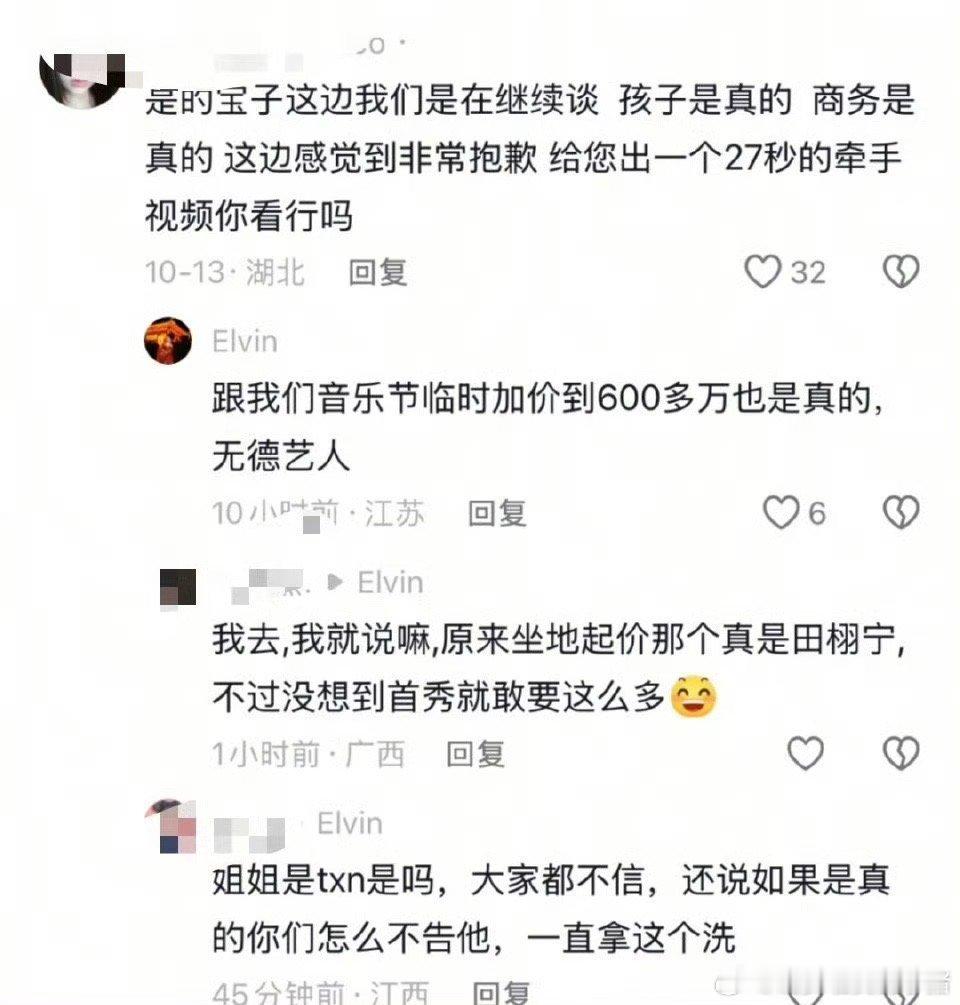 田栩宁被曝音乐节坐地起价,真的假的?[吃惊][吃惊]