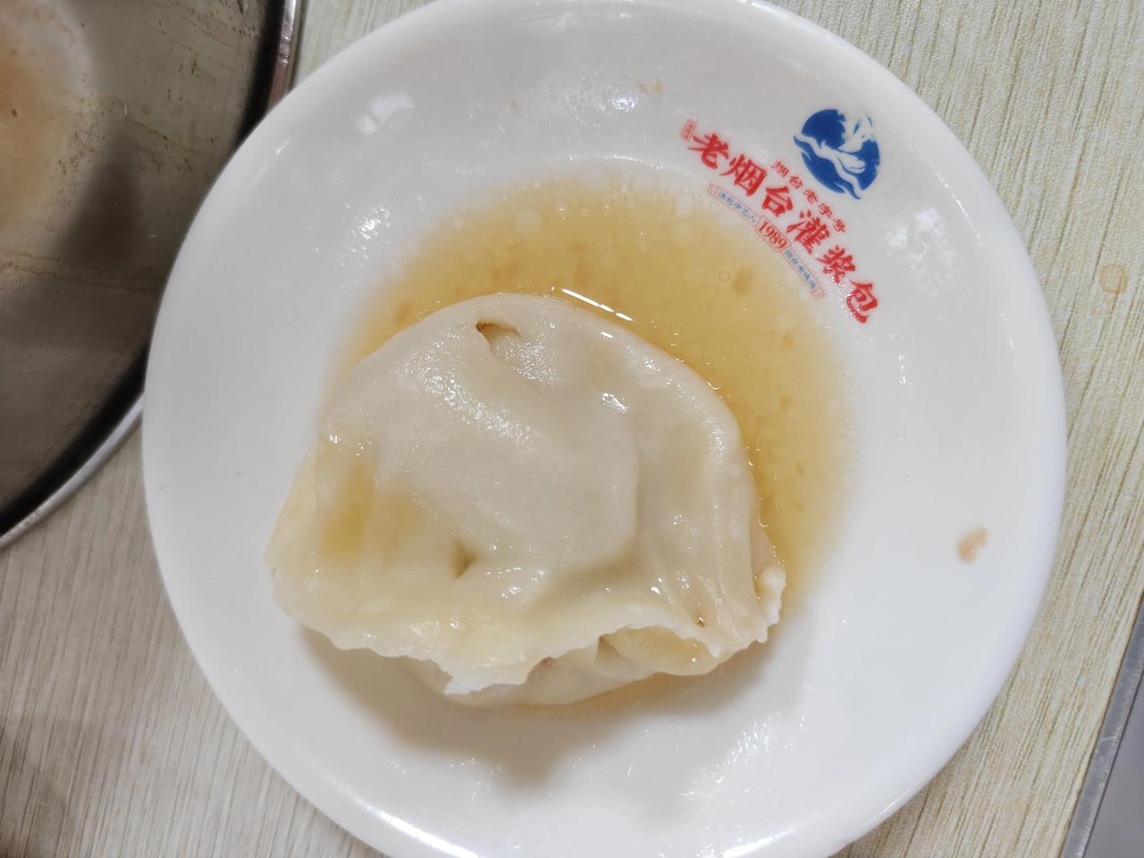 灌浆包——饺子中的XL码。 到山东烟台,灌浆包是一道不可缺少的美食。灌浆包,顾名思义就是里面灌了汤料进去的包子,那么这种包子长得什么样子?好不好吃呢? 说实话,我也是第一次到烟台,第一次品尝灌浆包。我感觉这就是饺子,只不过它比饺子大一点,是饺子中的XL码,比杭州小笼包大很多,每屉10个包子,价格从15元至36元不等。我点了牛肉包,挺好吃的,里面的汤汁也美味,但是白菜肉馅包就太咸了,咸的发苦,难以下咽。