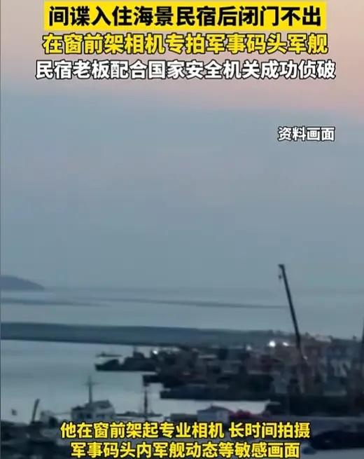 民宿店主抓出间谍! 长住客不逛景点只盯军港,架专业相机偷拍——这事儿哪是运气好,分明是普通人的警惕心,守住了国家安全的第一道门! 谁能想到,看着像游客的中年男人,订房时就追问军港细节,住进来后天天闷在屋里,镜头专对敏感方向。换别人可能觉得“多管闲事”,但店主记着反间谍宣传,果断报警,没让秘密外流。 总有人觉得间谍只在电影里,可现实里他们就藏在游客、租客里。拍风景用手机足够,带专业设备专盯军港、科研院的;不逛景点专蹲敏感区域的,这些反常就是信号。 反间谍从不是国家的“独角戏”,店主、司机、售票员的一个留意,可能就堵住大漏洞。