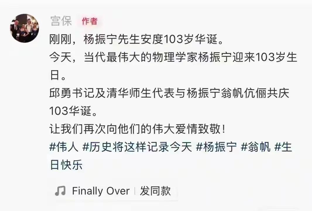 我不羡慕杨振宁是物理天才也不羡慕他娶了小54岁的翁帆最让我羡慕一点,他居