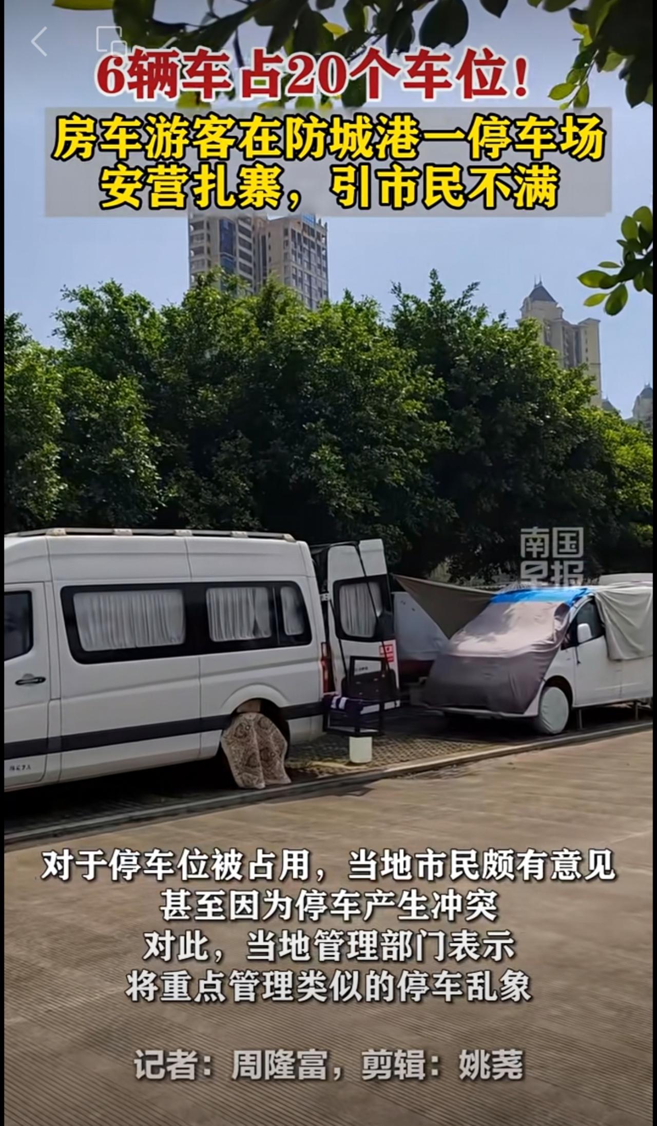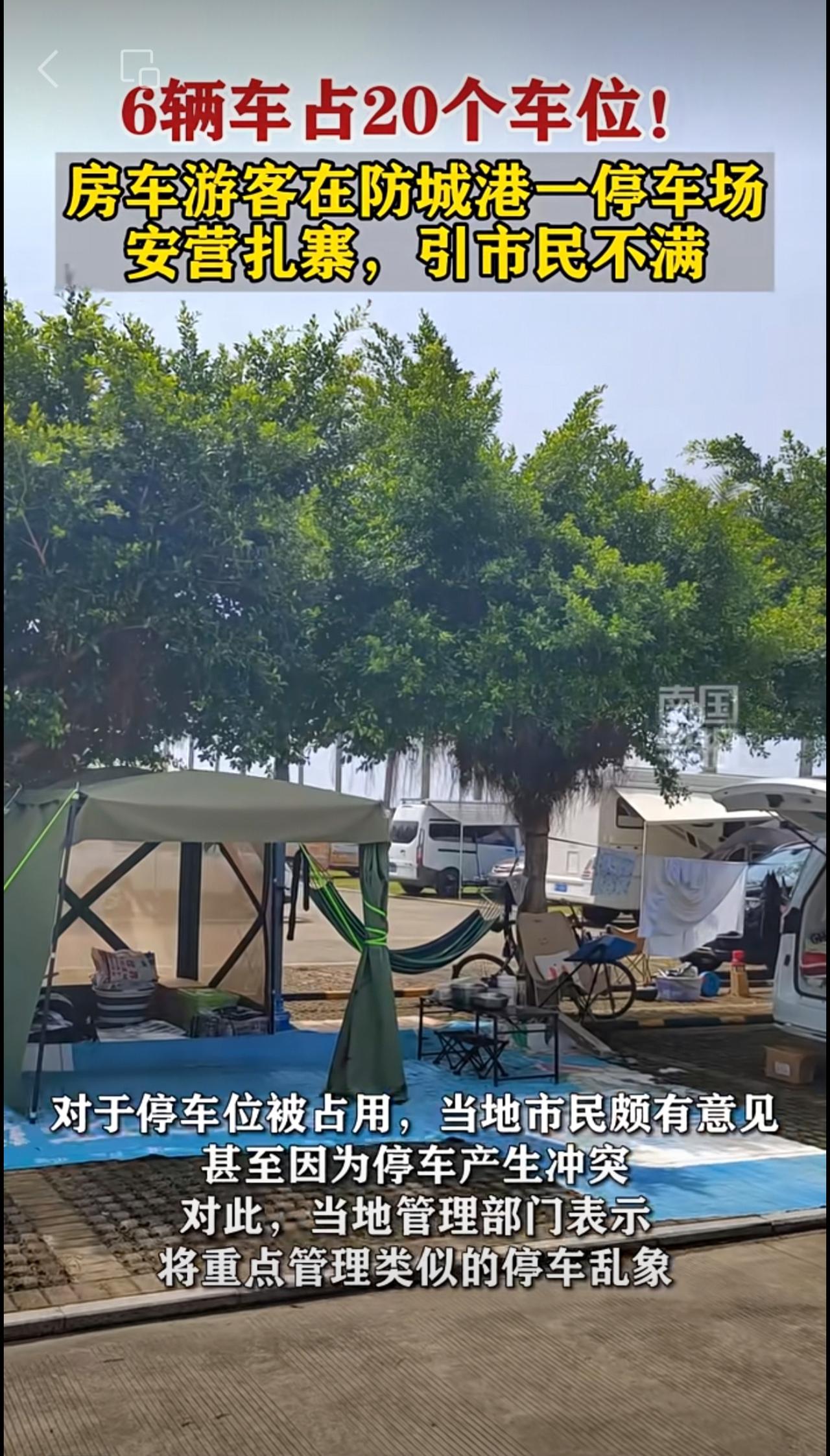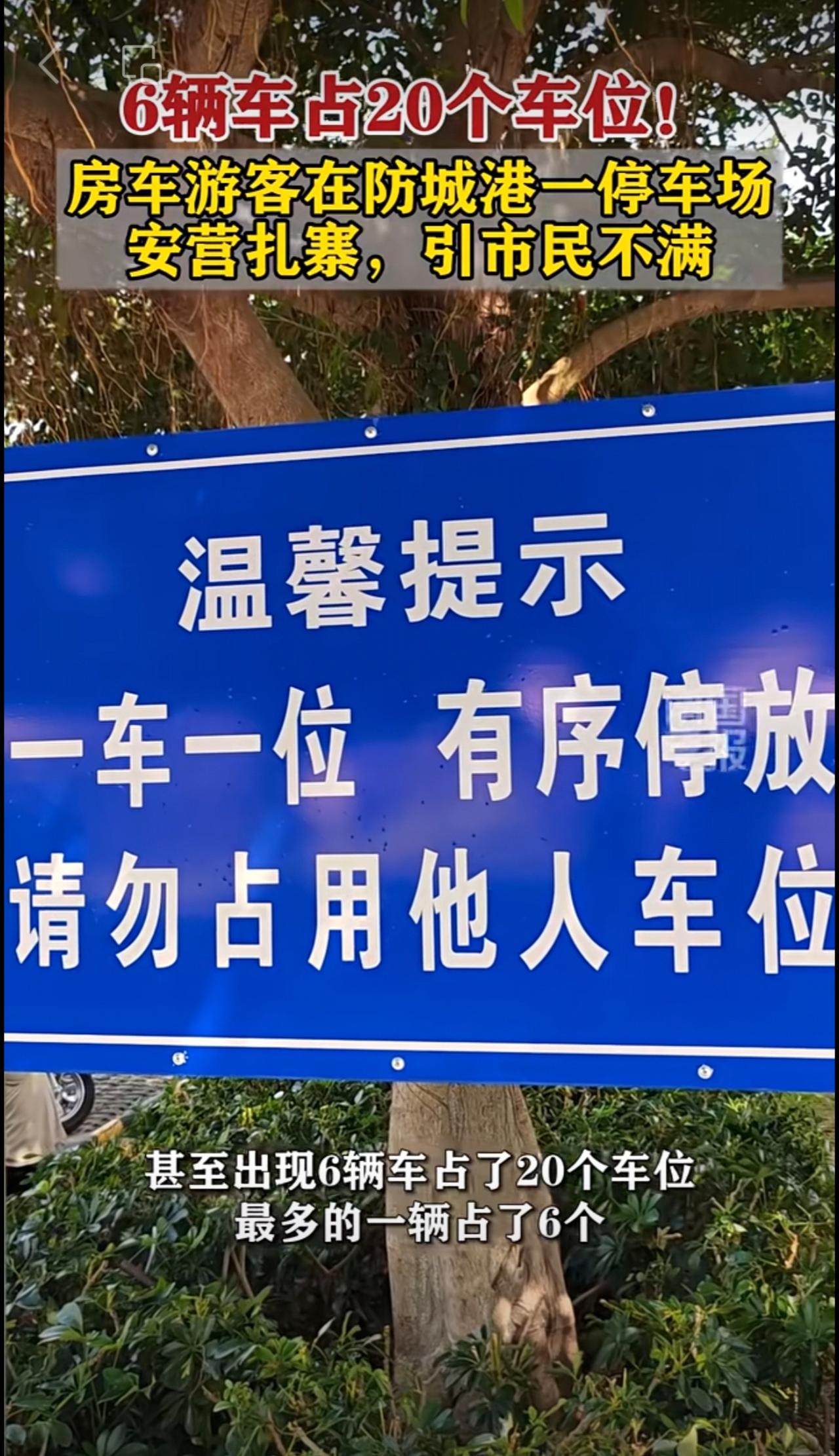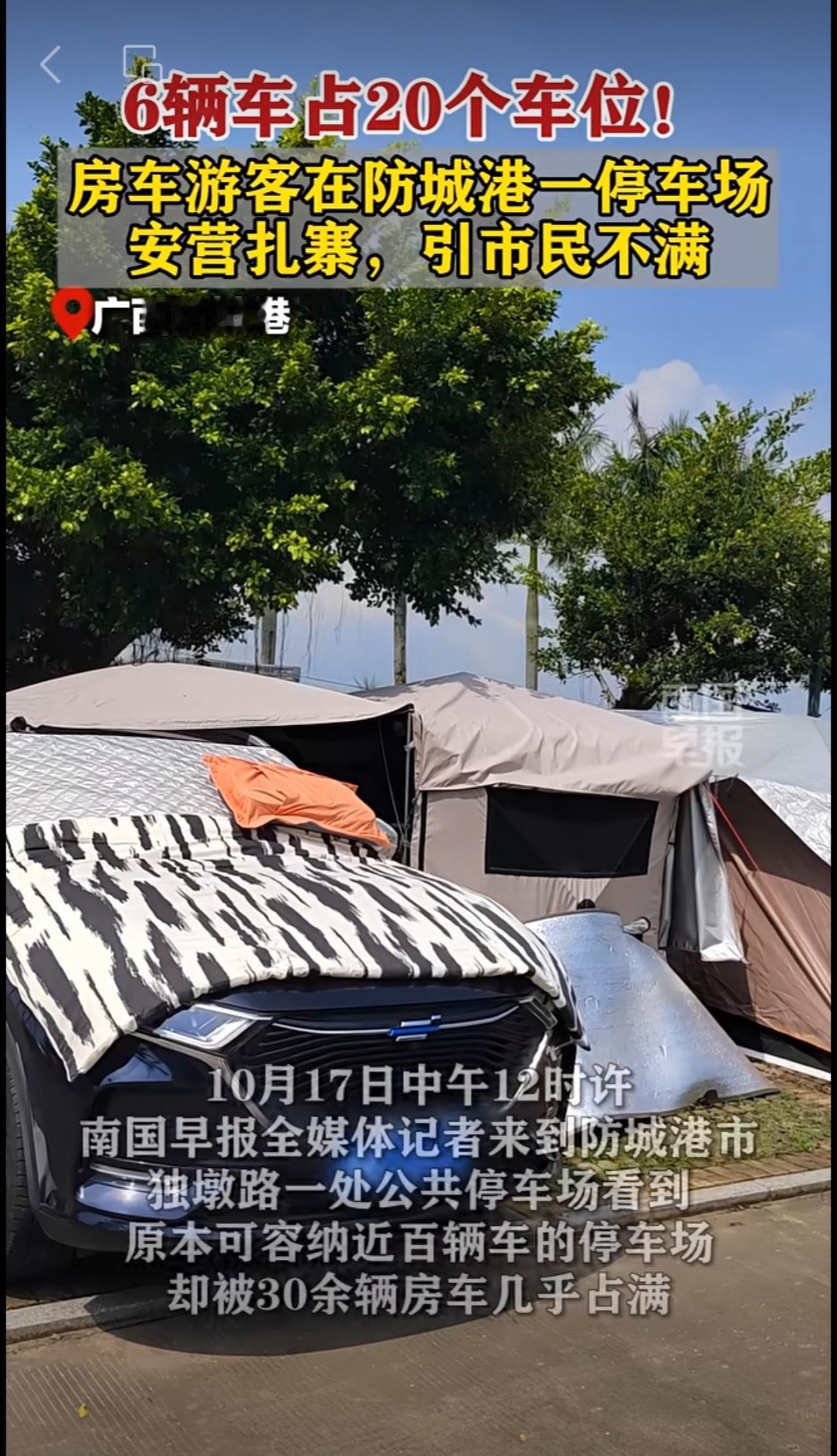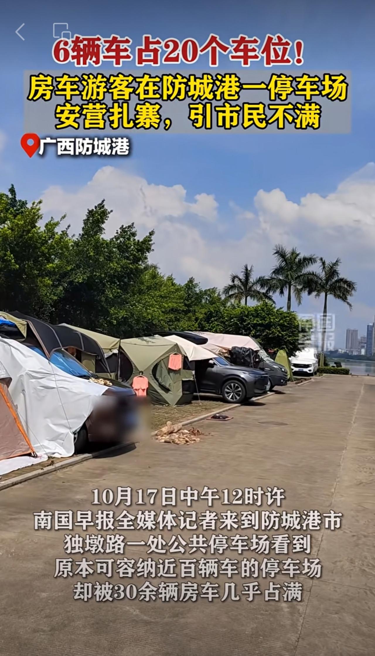 6辆车占20个车位!房车游客在防城港一停车场安营扎寨,引市民不满 房车 游客 停车场 (记者:周隆富,剪辑:姚荛)更多视频 点击关注·@南国早报