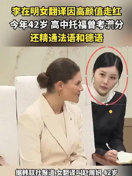 2025年10月15日,韩国总统李在明会见瑞典女王储时,身旁女翻译赵周妍因高颜值和专业表现引发热议。42岁的她身着藏青职业装,侧颜神似全智贤,更以高中托福满分、精通英法德三语的实力完成交传。从平昌冬奥会零下15度户外工作6小时,到如今外交场合的从容应对,她用实力诠释了“美貌与智慧并存”。李在明访美 韩总统
