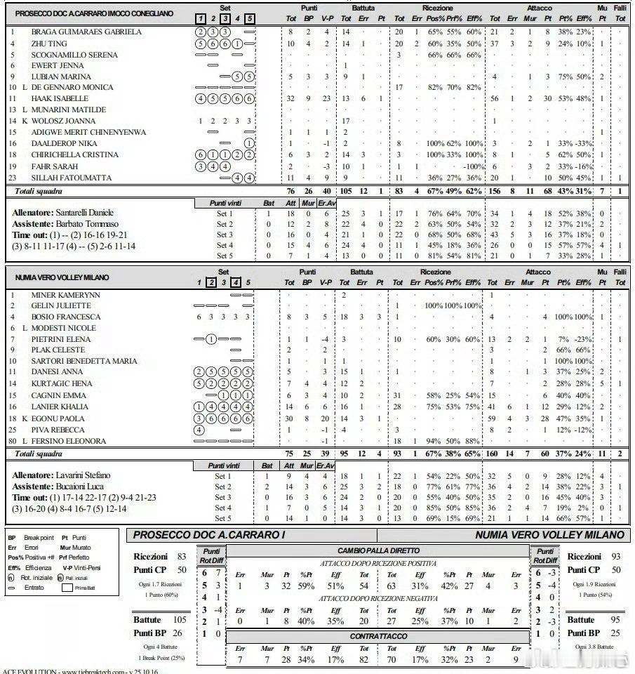 屁特里尼1分(13扣1中2失误2被拦10一传)