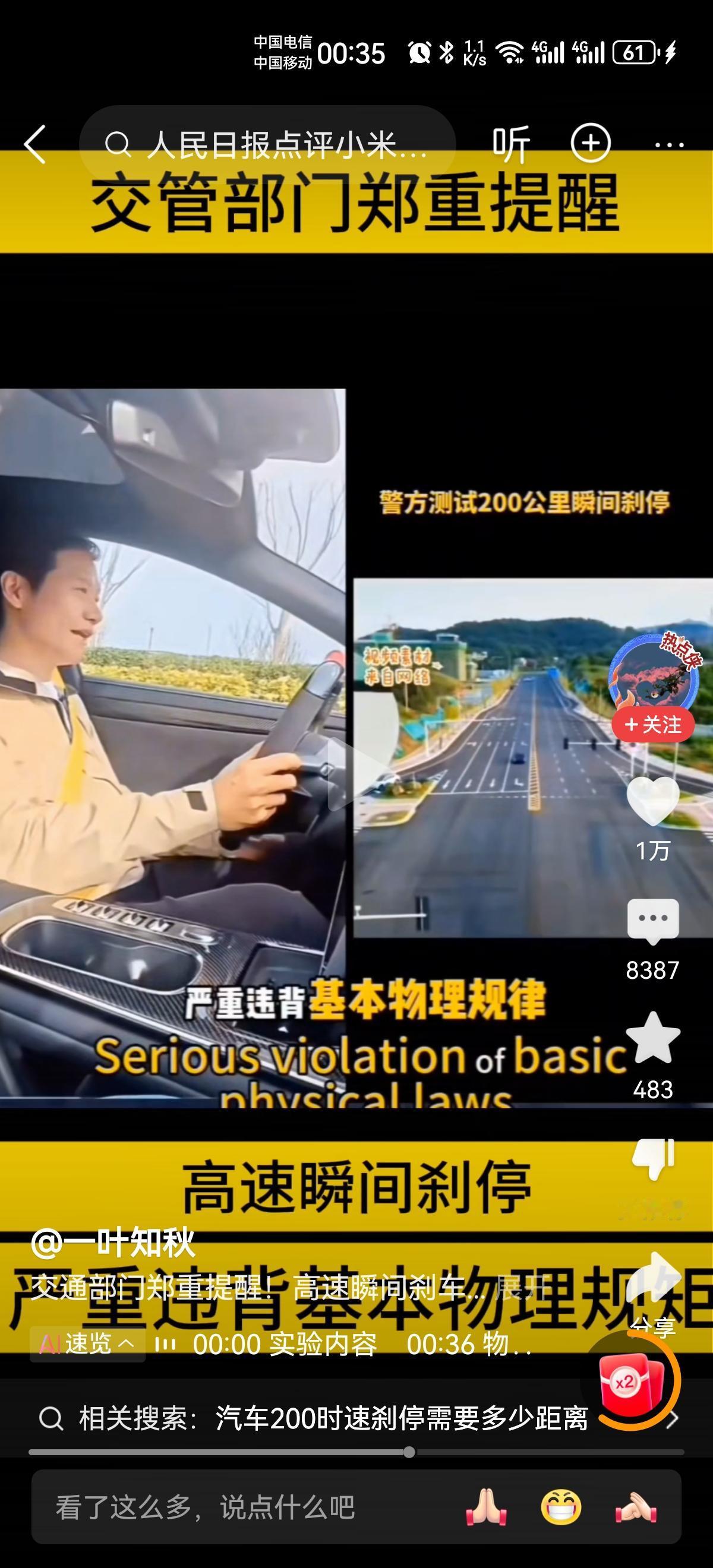 小米和雷布斯掉粉,逐渐失去粉丝的信任,原因在何处?这是雷布斯他们应该思考的问题。 看到此视频,想起了余大嘴曾经说过的一句话,“安全是汽车最大的豪华”。 何为安全?不出安全事故,少出安全事故,出了安全事故还能保护好乘车人的安全。只要不出安全事故的车才是最安全的车。 200公里每小时,瞬间刹停,违反基本物理规律的事情,小米能做到?雷布斯还能说出来?能做到吗? 追“颜值”,过“宣传”,说“大话”,失去信任是早晚的事。 尤其是成都小米车出了事后,众人合力都无法打开车门,雷布斯却在这个时候说,“打击黑粉”,“打击水军”。应对方式需要合适,而不是一味追求按照自己的方式走。 把小米汽车“安全”放在第一位,不是把“颜值”放在第一位,安全才是汽车最大的豪华。 也希望所有的车企,都把安全放在第一位,不要整天说“大话”,吹“大牛”。要不然,火只是一时的,不会长久。小米汽车危机 小米汽车坠落 小米黑公关 小米雷总语录 小米汽车危害 小米黑公关 小米翻车 雷·布斯 小米雷布斯 小米新车掉漆