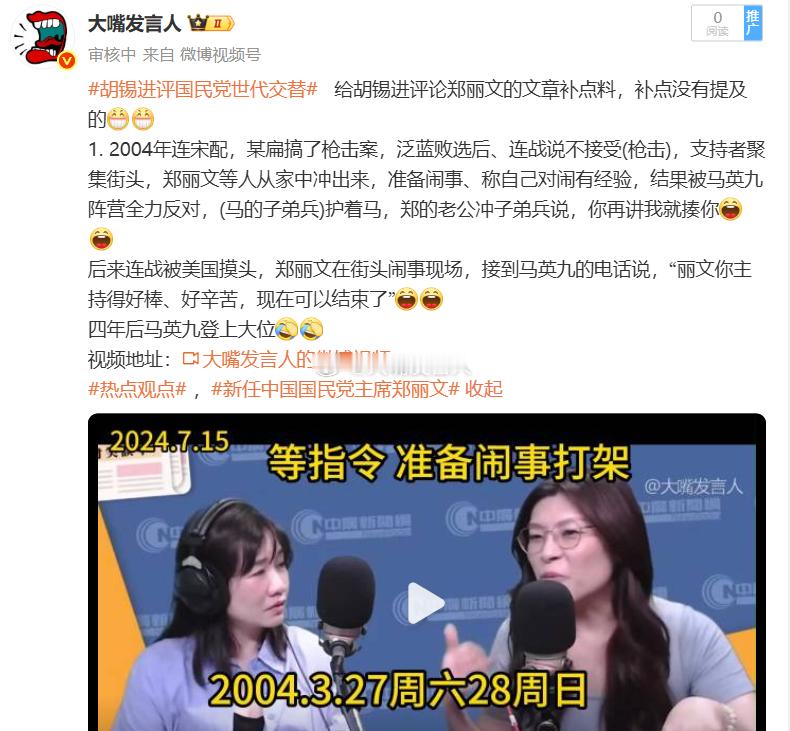胡锡进评国民党世代交替 又被审核了,或许是文字中有“马某九、连某、阿美”等字眼[允悲]